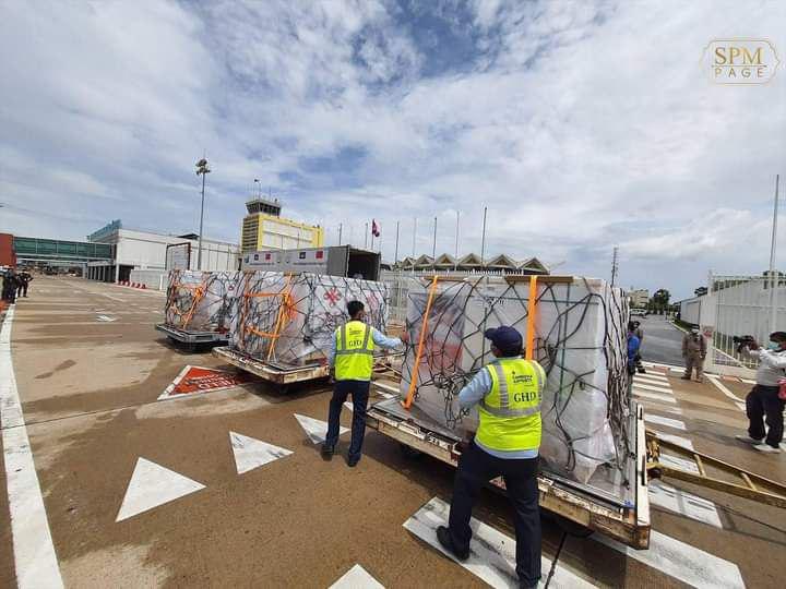 ដូចការគ្រោងទុក ពីវ៉ាក់សាំងប្រយុទ្ធប្រឆាំងជំងឺកូវីដ-19 ស៊ីណូវ៉ាក់ (Sinovac Vaccine) ចំនួន50ម៉ឺនដូស និងស៊ីណូហ្វាម (Sinopharm Vaccine)ចំនួន50ម៉ឺនដូស ដែលជាជំនួយរបស់រដ្ឋាភិបាលនៃសាធារណរដ្ឋប្រជាមានិតចិន និងជាការបញ្ជាទិញរបស់រាជរដ្ឋាភិបាលកម្ពុជា សរុបចំនួន1លានដូសបានដឹកមកដល់ព្រះរាជាណាចក្រកម្ពុជា នាព្រឹកថ្ងៃទី8 ខែមិថុនា ឆ្នាំ2021 តាមជើងហោះហើរពិសេស និងដឹកដោយយន្តហោះរបស់ចិន។
