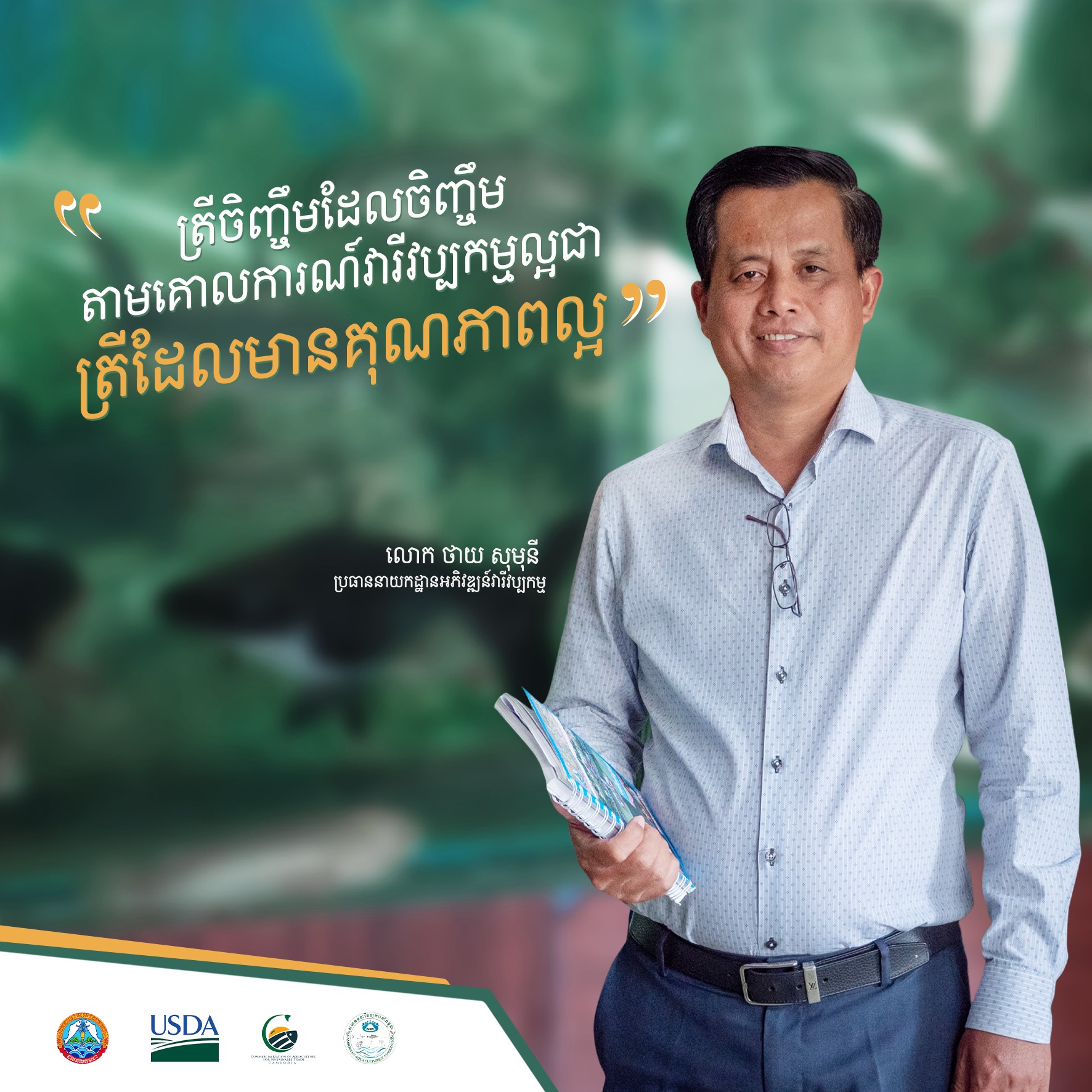 «យើងជំរុញការងារចិញ្ចឹមកន្ធាយនឹង ដោយសារមានទីផ្សារដូចកង្កែបចឹង ឥឡូវយើងឃើញថា បងប្អូនកសិករយើងបានធ្វើការងារ និងយកចិត្តទុកដាក់ ហើយបានឈរជើងគួរសម ក្នុងចន្លោះពី ៣០ ទៅ ៤០ភាគរយដែលអាចផ្គត់ផ្គង់ក្នុងស្រុក»។