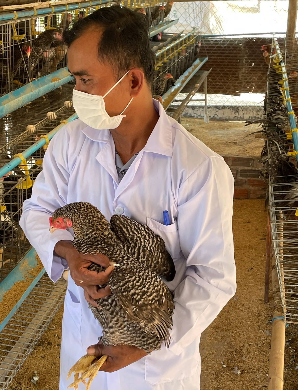 កសិករចំនួន៣គ្រួសារដំបូងដែលត្រូវបានជ្រើសរើសនៅក្នុងខេត្តតាកែវ បានទទួលនូវបណ្តុះបណ្តាលបច្ចេកទេសក្នុងការគ្រប់គ្រងមេបាពូជមាន់ វិធានការការពារជីវសុវត្ថិភាព បច្ចេកទេសបង្កាត់សិប្បនិម្មិត និងការកត់ត្រាទិន្នន័យក្នុងកសិដ្ឋានបង្កាត់ពូជ។