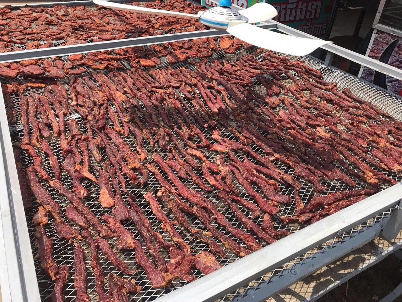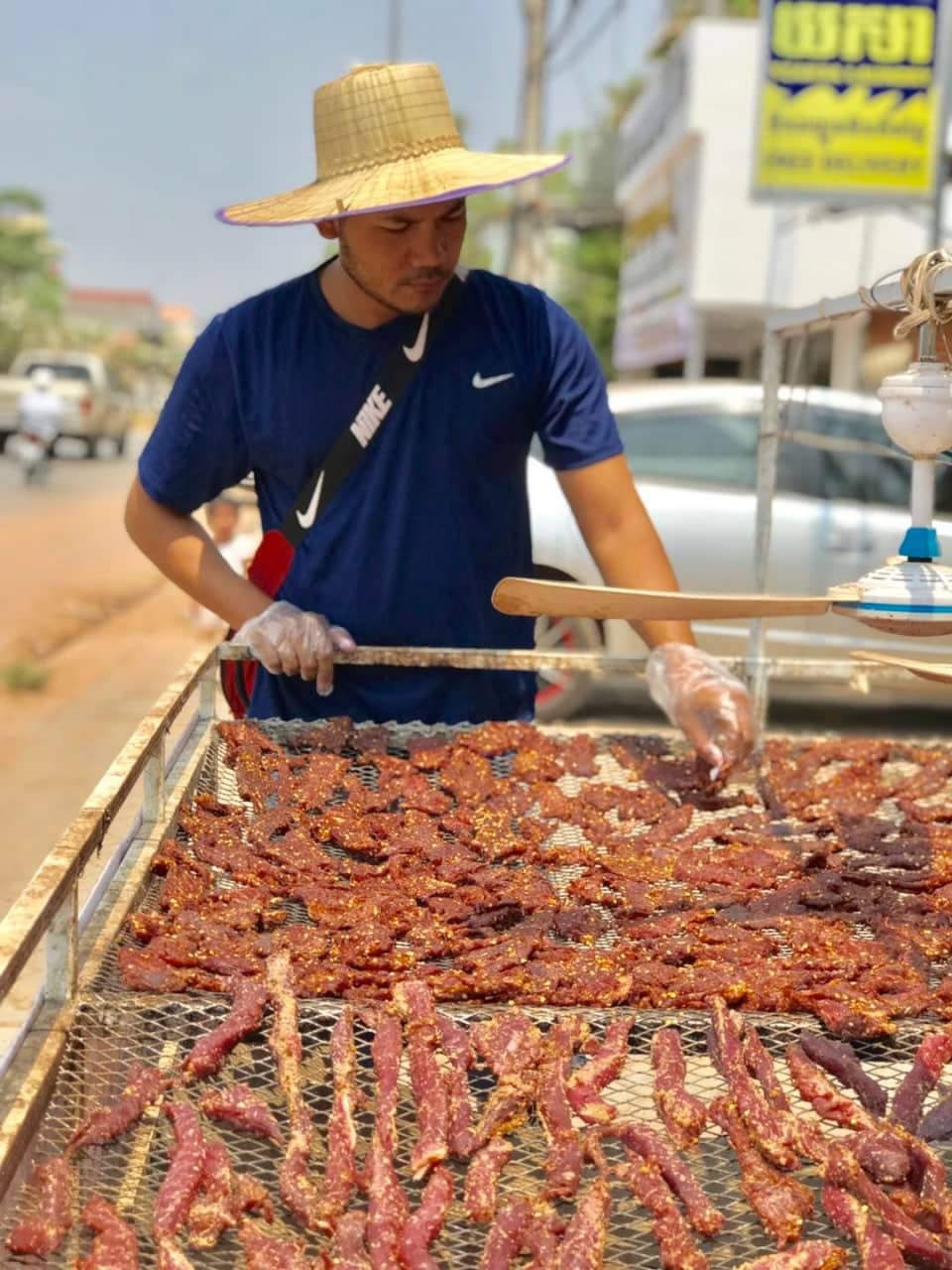 “សព្វថ្ងៃខ្ញុំលក់បានចាប់ពី ៦០គីឡូទៅ ៨០គីឡូសាច់ស្រស់ តែពេលប្រលាក់ហើយពេលហាលស្ងួតស្រក់ទម្ងន់នៅសល់ប្រហែលជា ៤០-៥០គីឡូក្រាម ហើយពេលខ្លះគេកម្មង់ច្រើនអាចដល់ជាង១០០គីឡូក៏មាន”