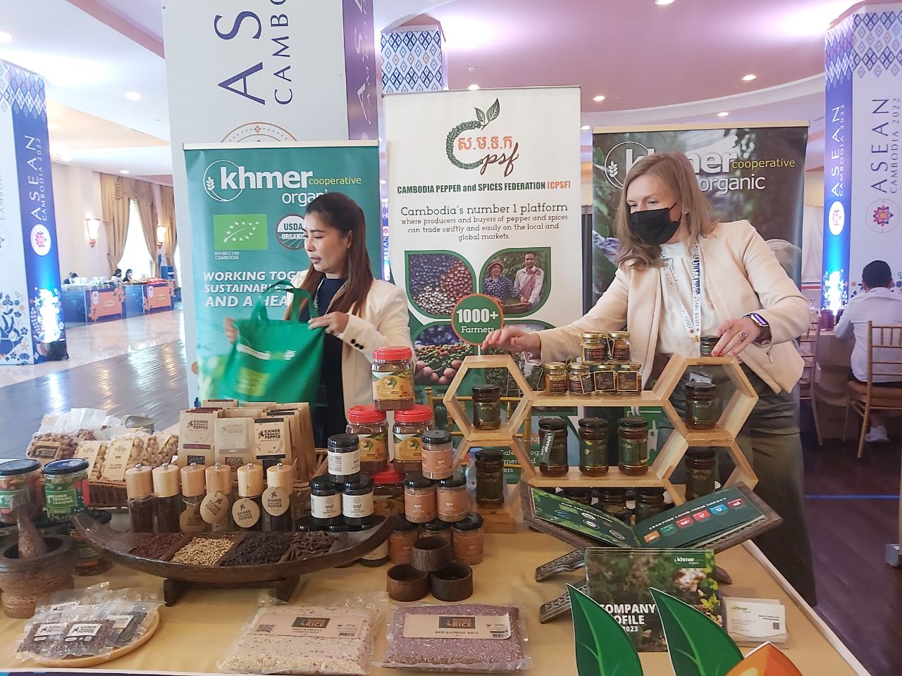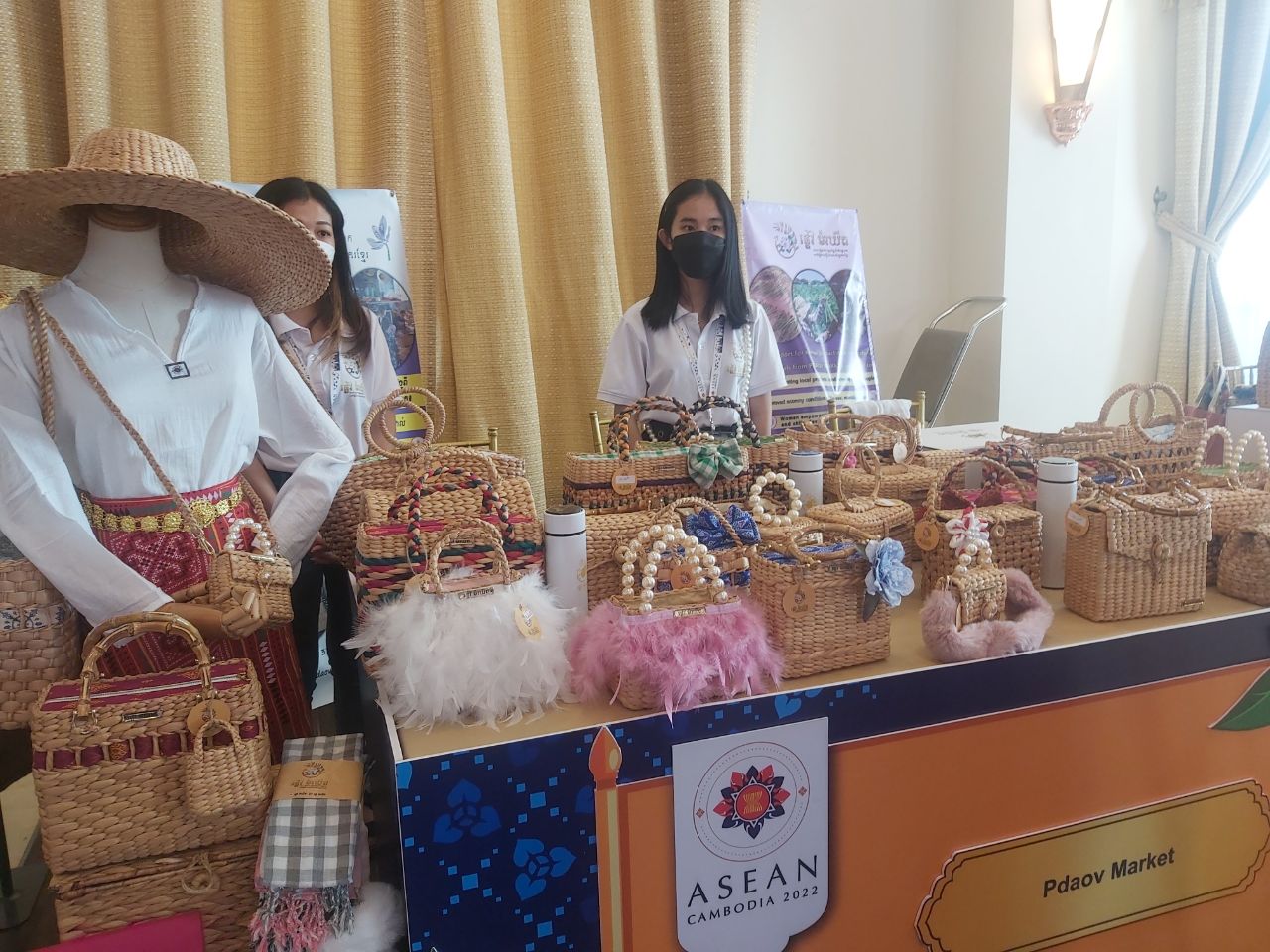ភ្នំពេញ៖ ក្នុងពេលយកទំនិញដែលជាផលិតផលកែច្នៃក្នុងស្រុក រួមមានគ្រឿងឧបភោគ បរិភោគ សម្ភារៈប្រើប្រាស់ ហូល ផាមួង កន្សែង ក្រមា និងគ្រឿងចម្លាក់នានាមកបង្ហាញក្នុងកិច្ចប្រជុំកំពូលអាស៊ានលើកទី៤០ – ទី៤១ និងកិច្ចប្រជុំពាក់ព័ន្ធចាប់ពីថ្ងៃទី០៨ រហូតដល់ថ្ងៃទី១៣ ខែវិច្ឆិកា ឆ្នាំ២០២២នៅក្នុងសណ្ឋានគារសុខារាជធានីភ្នំពេញ ក្រុមអ្នកលក់ផលិតផលកែច្នៃក្នុងស្រុកបានបង្ហាញពីកិច្ចខិតខំជួយដល់សហគមន៍ក្នុងការជួយរកការងារ និងជួយទិញផលិតផលរបស់ប្រជាសហគមន៍សំដៅដើម្បីជួយលើកស្ទួយជីវភាពឱ្យកាន់តែប្រសើរឡើង។