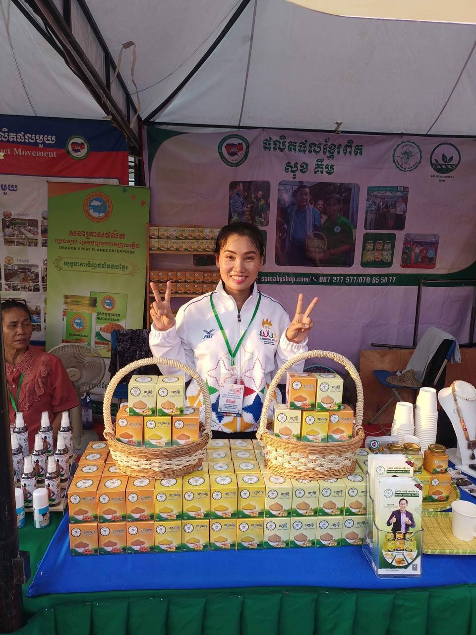 “នៅទីនេះមានប្រមាណ ២០ស្តង់ ដែលកំពុងទទួលភ្ញៀវយ៉ាងមមាញឹក ហើយសូមអំពាវនាវឱ្យបងប្អូនដែលធ្វើដំណើរមកទស្សនាការប្រកួតកីឡានានា អាចចូលមកសាក តេស្ត៍ នូវផលិតផលក្នុងស្រុករបស់យើងផ្ទាល់ មិនចាំបាច់តែទិញនោះទេ ឱ្យតែបានចូលមកសាក តេស្ត៍ ក៏ដូចជាផ្ដល់នូវមតិយោបល់ក៏ចាត់ទុកថាជាការគាំទ្រ ក៏ដូចជាការផ្ដល់កម្លាំងចិត្តដល់ម្ចាស់អាជីវកម្មគ្រប់រូប។”