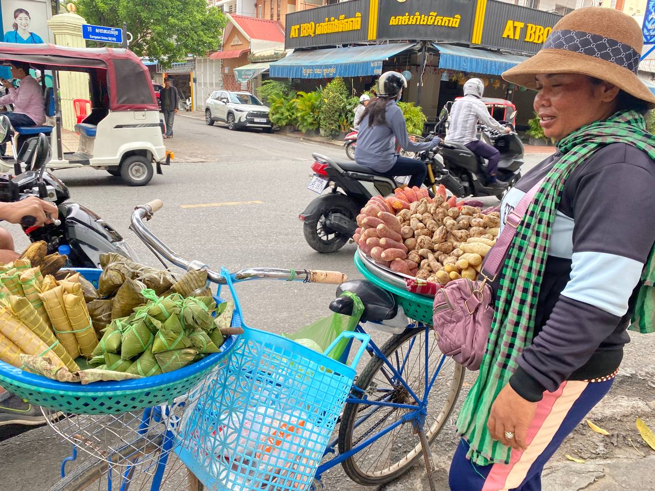 “ខ្ញុំលក់ដំឡូងស្ងោរនេះវិលល្ងាច ព្រឹកឡើងជិះឡានមកលក់ ឌុបកង់ដើរលក់ដំឡូងស្ងោរ ហើយលក់បានប្រមាណ ៧០ គីឡូក្រាមដែរក្នុងមួយថ្ងៃ។”