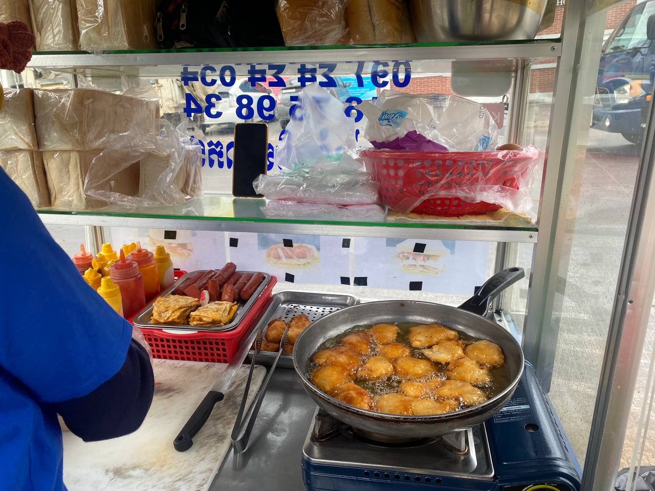 «យើងត្រូវងើបពីព្រលឹមម៉ោងប្រហែល ៣កន្លះដើម្បីរៀបចំឥវ៉ាន់ និងដាក់ចៀនប្រហិត និងពងទាជាដើម លុះរៀបចំរួចនៅម៉ោង ៥កន្លះព្រឹកទើបយើងជិះចេញពីផ្ទះនៅម្ដុំក្រាំងធ្នង់ ទៅកន្លែងលក់នៅម្ដុំសែនសុខ ឈប់រ៉ឺម៉កសិនទើបរៀបចំដាក់ចៀនសាច់មាន់ ព្រោះវាត្រូវចៀនភ្លាមៗទើបសាច់នៅស្រួយឆ្ងាញ់។ ការលក់នេះដែរ ពេលព្រឹកយើងលក់នៅម្ដុំសែនសុខ លុះពេលថ្ងៃ និងល្ងាចទៅឈប់នៅម្ដុំសាលា វេស្ទើន ទួលគោកវិញ បើគិតទៅមួយថ្ងៃលក់ពីម៉ោង ៦ព្រឹក ដល់ ៦ល្ងាចទើបឈប់»។