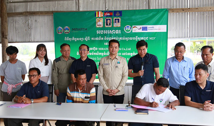 ការចុះកិច្ចសន្យាលើការផលិត និងផ្គត់ផ្គង់គ្រាប់ស្វាយចន្ទី ៤០០តោន បានធ្វើឡើងរវាងសហគមន៍ប្រាសាទសំបូររុងរឿង សាលាវិស័យកំពង់ធំ និងសហគមន៍ទំរឹង ជាមួយក្រុមហ៊ុនជប៉ុន MIRARTH Agri Tech នៅខេត្តកំពង់ធំ និងកិច្ចសន្យាទំហំ៤០ម៉ឺនដុល្លារមួយទៀត សម្រាប់ការផ្គត់ផ្គង់គ្រាប់ស្វាយចន្ទីសើមចំនួន៣០០តោន ត្រូវបានចុះហត្ថលេខាជាផ្លូវការបន្ទាប់គ្នារវាងសហគមន៍កសិកម្មទំនើបស្វាយចន្ទីទាំង៣នៅខេត្តកំពង់ធំ និងក្រុមហ៊ុនជប៉ុន Santana Agro Proucts។