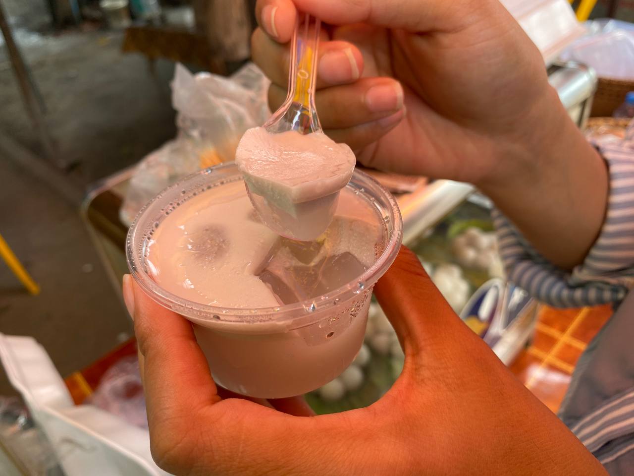 អ្នកនាង វង្ស សាយ័ណ្ណ ជាអាជីវករលក់ចាហួយត្នោតខ្ចីខាងលើនេះបានប្រាប់ AMS ឱ្យដឹងថា ដោយសារតែខ្លួនមានជំនាញខាងបង្អែមស្រាប់ បានសាកល្បងយកត្នោតខ្ចីមកធ្វើជាចាហួយ ហើយក៏ឃើញថាទទួលបានលទ្ធផលវិជ្ជមាន និងបង្កើតជាមុខបង្អែមមួយប្រភេទទៀតប្រចាំតំបន់។