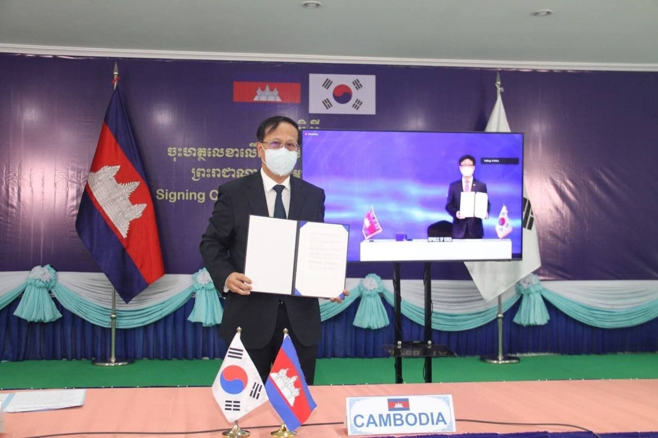 ភ្នំពេញ ៖ កម្ពុជា និងសាធារណរដ្ឋកូរ៉េ នៅព្រឹកថ្ងៃទី២៦ ខែតុលា ឆ្នាំ២០២១ បានចុះហត្ថលេខាលើកិច្ចព្រមព្រៀងពាណិជ្ជកម្មសេរី (CKFTA) ជាផ្លូវការ ដោយឯកឧត្តម ប៉ាន សូរស័ក្តិ រដ្ឋមន្ត្រីក្រសួងពាណិជ្ជកម្ម និងឯកឧត្តម YEO Han-Koo រដ្ឋមន្ត្រីពាណិជ្ជកម្មនៃសាធារណរដ្ឋកូរ៉េតាមរយៈប្រព័ន្ធវីដេអូ។