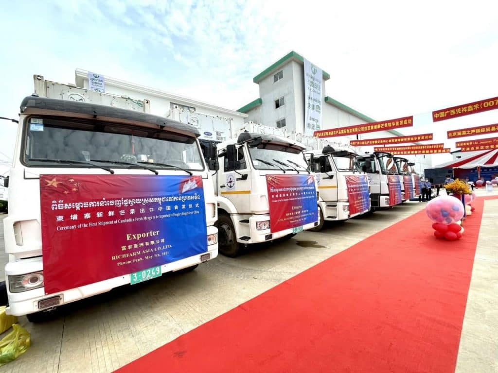 ដូចការគ្រោងទុក នៅត្រឹមព្រឹកថ្ងៃទី7 ខែឧសភា ឆ្នាំ2021នេះ រាជរដ្ឋាភិបាលកម្ពុជាតាមរយៈក្រសួងកសិកម្ម រុក្ខប្រមាញ់ និងនេសាទ បានប្រារព្វពិធីសម្ពោធការនាំចេញផ្លែស្វាយស្រស់ដោយផ្ទាល់ទៅកាន់ទីផ្សារប្រទេសចិនបន្ទាប់ពីកិច្ចចរចារអស់រយៈពេល3ឆ្នាំ និងការចុះហត្ថលេខាកាលពីចុងខែកន្លងទៅនេះ។
