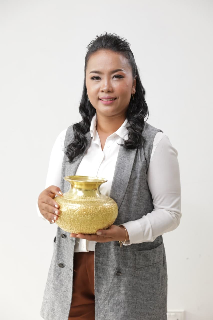 “អាជីវកម្មលក់វត្ថុអនុស្សាវរីយ៍ និងសម្ភារៈប្រើប្រាស់ចម្លាក់ស្ពាន់នេះ ខ្ញុំទើបតែចាប់ផ្តើមនៅក្នុងអំឡុងឆ្នាំ2020កន្លងទៅជាមួយនឹងដើមទុនជាង1ម៉ឺនដុល្លារ។ ការបង្កើតនេះគឺដោយសារតែខ្ញុំមានចិត្តស្រឡាញ់ទៅលើសិល្បៈចម្លាក់ទាំងអស់នេះ និងមានគ្រួសារជាអ្នកមានជំនាញផ្នែកសិល្បៈចម្លាក់នេះស្រាប់។ ខ្ញុំមើលឃើញពីក្បាច់ចម្លាក់ដ៏រស់រវើកយ៉ាងសម្បូរបែប ខ្ញុំមើលឃើញពីជីវិតដែលគេរស់នៅក្នុងជំនាន់មុនៗតាមរយៈក្បាច់អស់ទាំងហ្នឹង ហើយក្ដីស្រឡាញ់ និងចូលចិត្តទាំអស់នេះបានក្លាយជាកម្លាំងចិត្តជួយជំរុញឱ្យខ្ញុំបង្កើតអាជីវកម្មមួយនេះឡើង។ ខ្ញុំសង្ឃឹមថាអ្នកដទៃក៏អាចមើលឃើញពីស្នាដៃខ្មែរ វប្បធម៌ខ្មែរដែលបន្សល់ទុកតាំងពីបរមបុរាណមកដូចខ្ញុំដែរ”