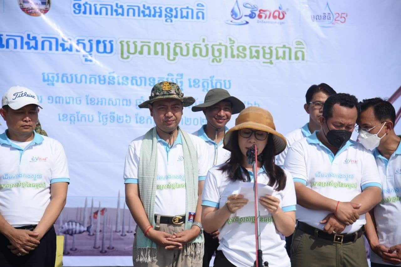 “វីតាល់ ដែលមានមូលនិធិ២៥រៀល មានមោទនភាពដែលទទួលការបន្តគាំទ្រពីក្រសួងបរិស្ថាន សម្រាប់គម្រោងដាំដើមកោងកាង ក្នុងឆ្នាំទី៣ ជាចំណែកនៃការចូលរួមការពារ និងស្តារប្រព័ន្ធអេកូឡូស៊ីដ៏សំខាន់នៃតំបន់ឆ្នេរកម្ពុជា”