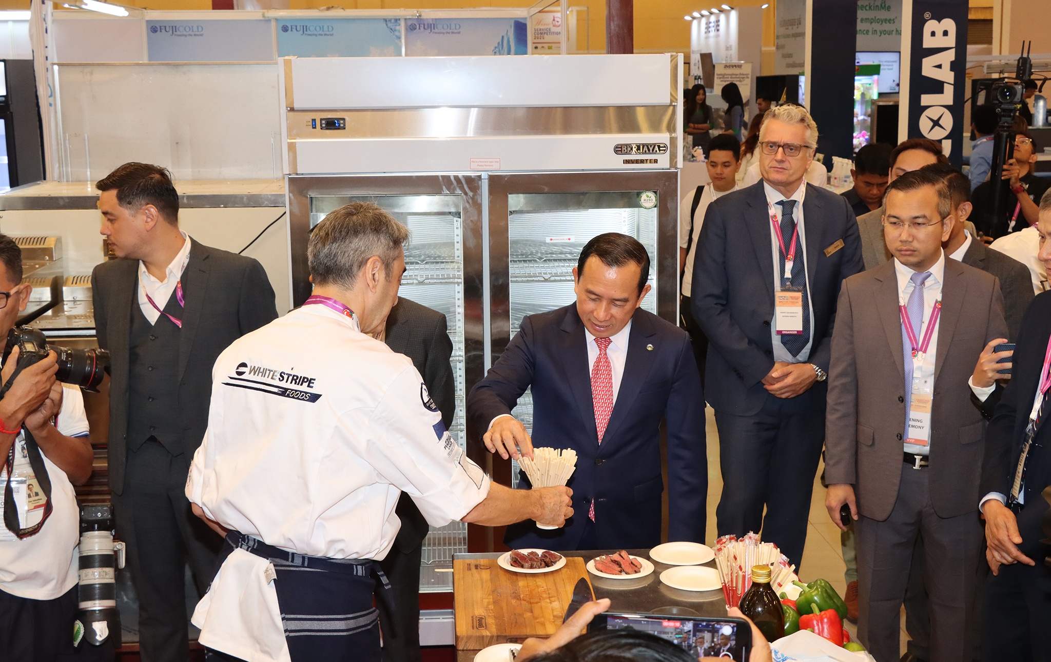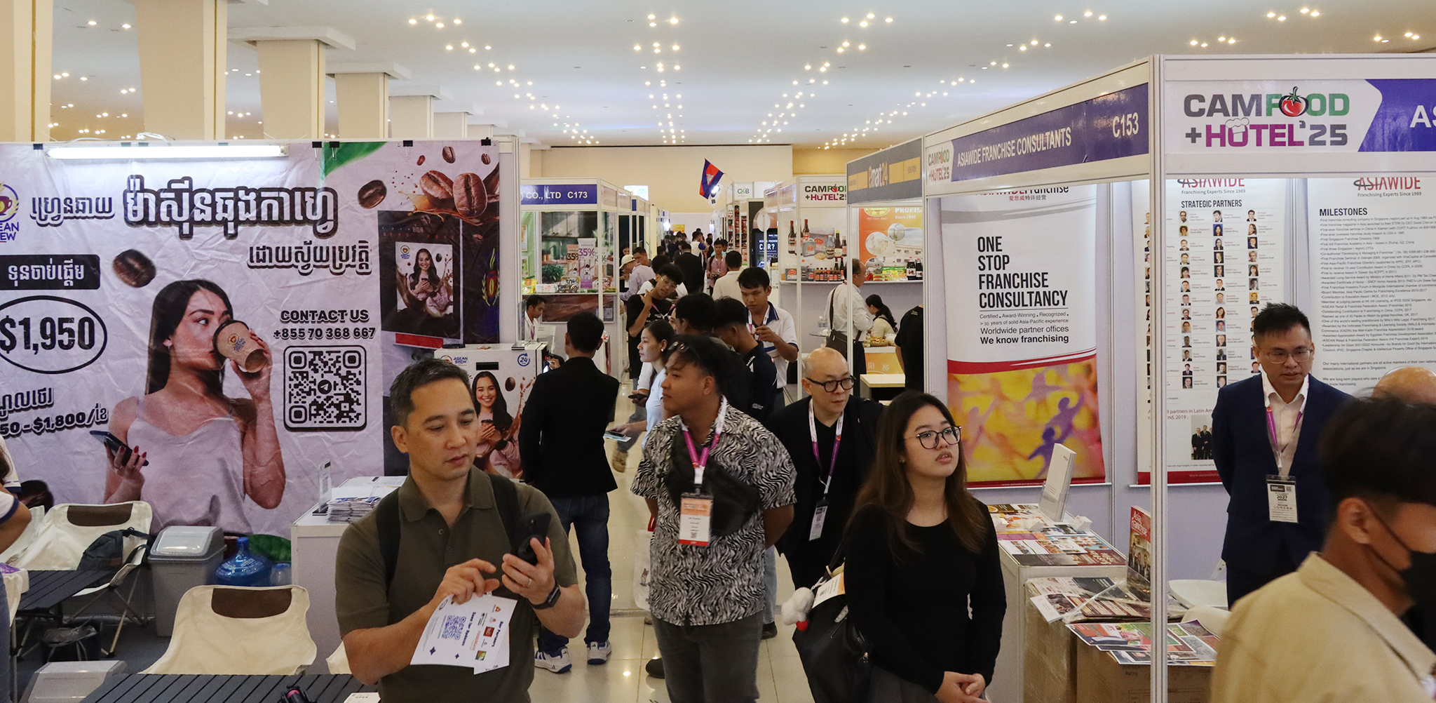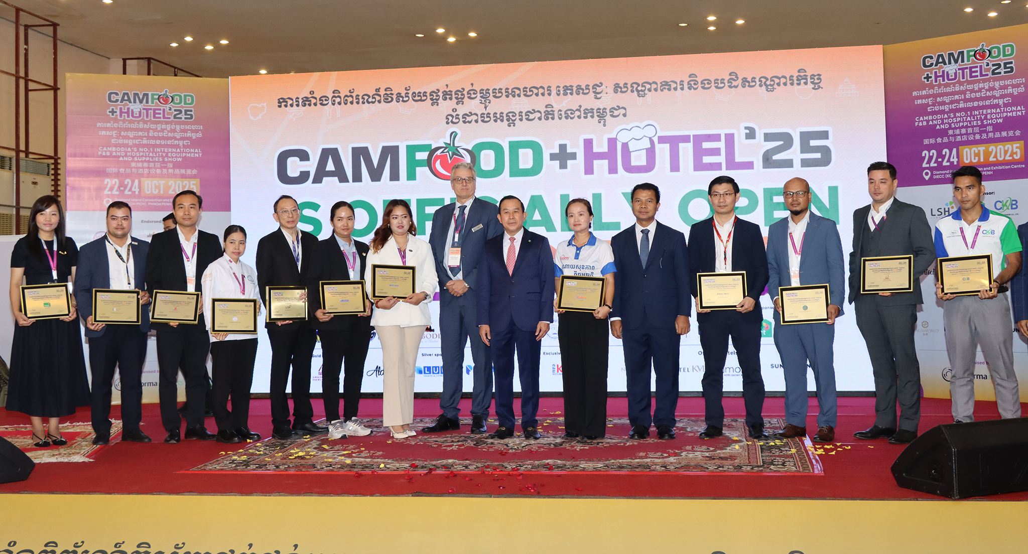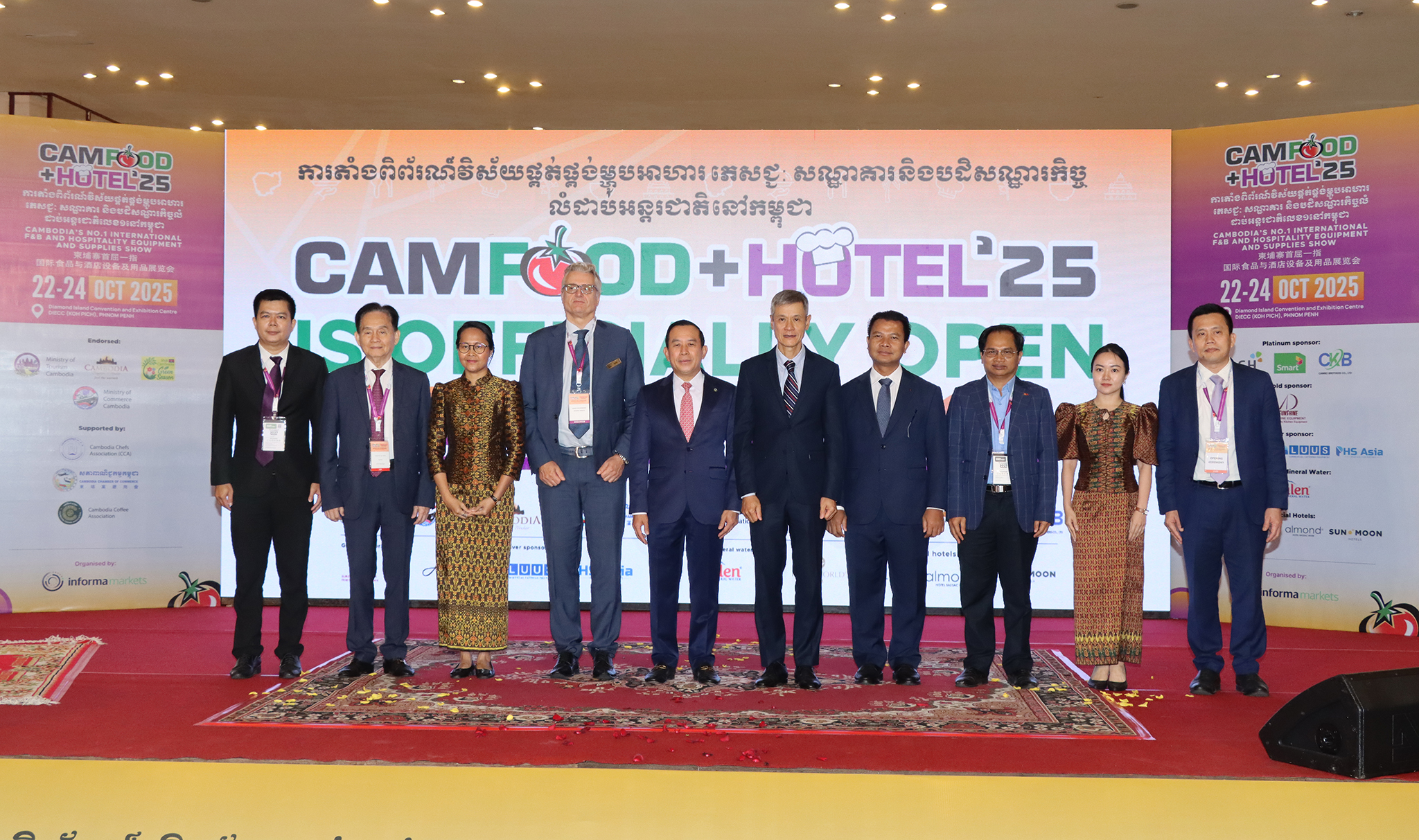 ពិព័រណ៍ អាហារ ភេសជ្ជៈ សណ្ឋាគារ ត្រូវបានសម្ពោធជាផ្លូវការនាព្រឹកថ្ងៃទី២២ ខែតុលា ឆ្នាំ២០២៥ ក្រោមអធិបតីភាពឯកឧត្តមបណ្ឌិត ហួត ហាក់ រដ្ឋមន្ត្រីក្រសួងទេសចរណ៍ និងមានការចូលរួមពី លោក Gerard Leeuwenburgh អ្នកគ្រប់គ្រងទូទៅនៃក្រុមហ៊ុន Informa Market ប្រចាំប្រទេសកម្ពុជា និងម៉ាឡេស៊ី ឯកឧត្តម ង្វៀន មិញ វូ (Nguyen Minh Vu) ឯកអគ្គរដ្ឋទូតសាធារណរដ្ឋសង្គមនិយមវៀតណាមប្រចាំនៅកម្ពុជា និងឧកញ៉ា លឹម សុជាតិ អនុប្រធានសភាពាណិជ្ជកម្មកម្ពុជា។