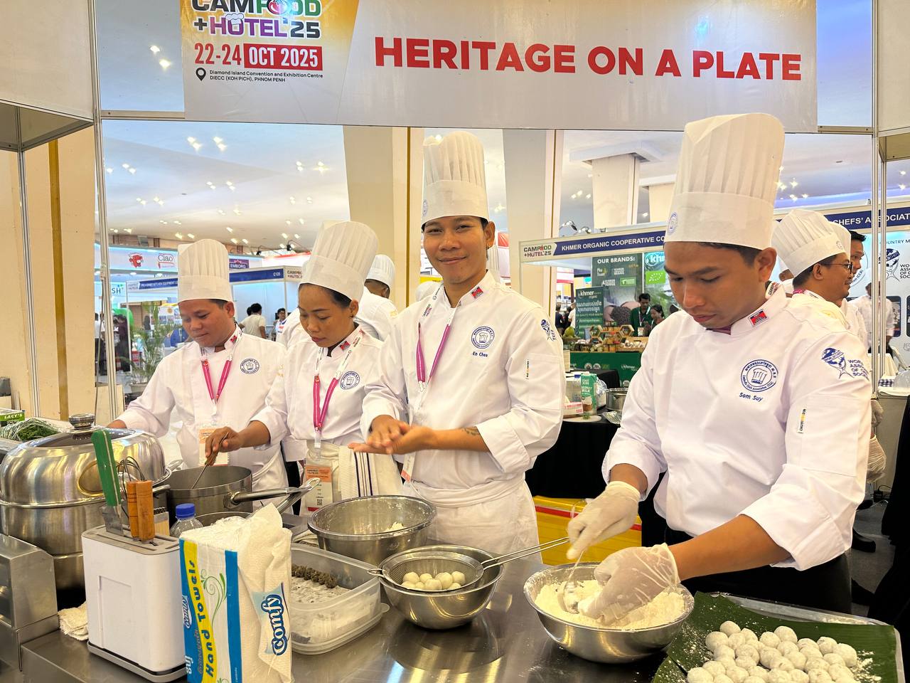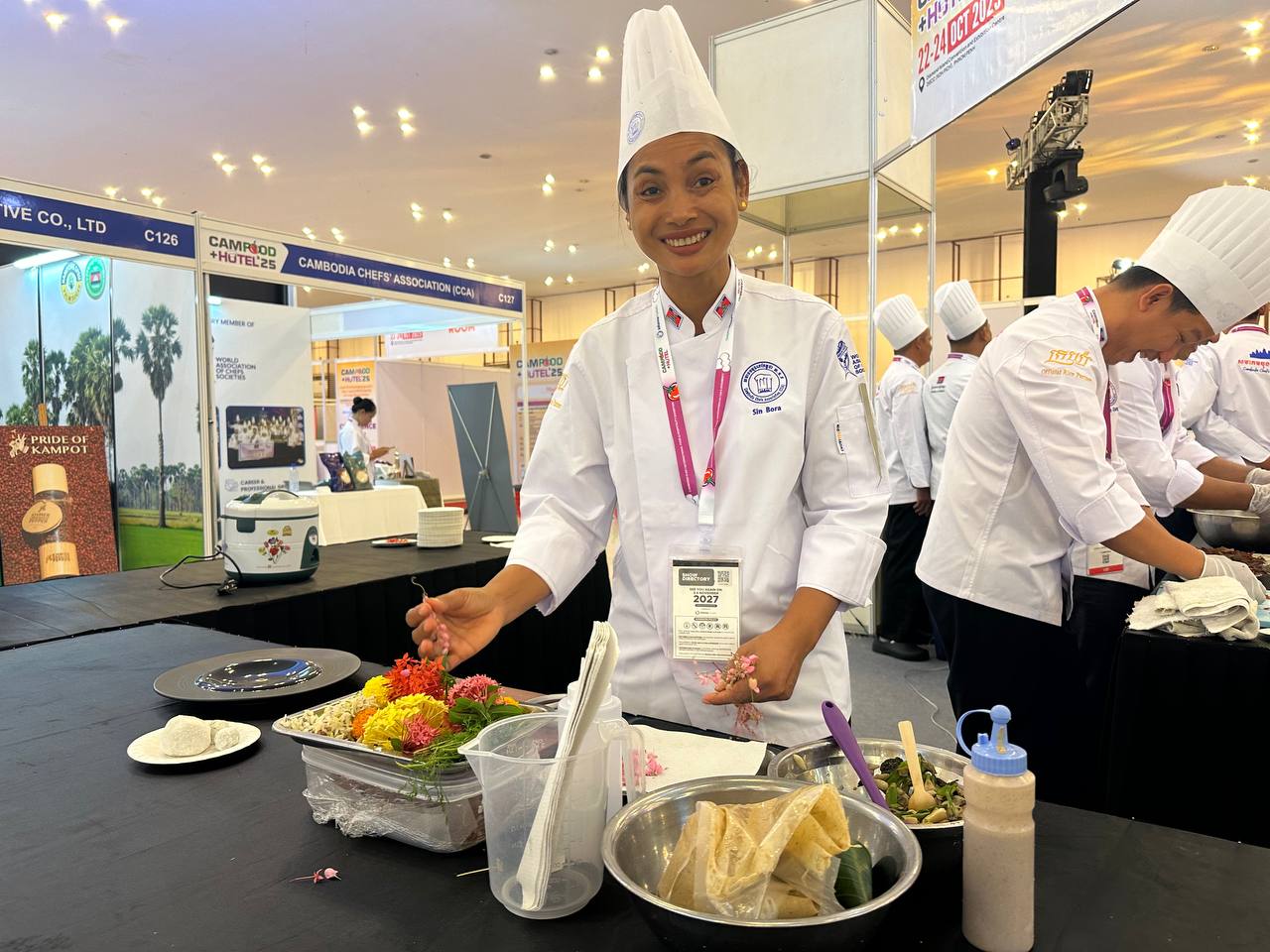 ភ្នំពេញ ៖ ប្រទេសចំនួន៩ មកពីទ្វីបអាស៊ី អឺរ៉ុប និងសហរដ្ឋអាម៉េរិក រួមមាន កម្ពុជា វៀតណាម ម៉ាឡេស៊ី អាម៉េរិក ចិន សាធារណរដ្ឋកូរ៉េ អ៊ីតាលី ហ្វាំងឡង់ និងសិង្ហបុរី បានចូលរួមកម្មវិធីពិព័រណ៍ CAMFood & CAMHotel ដែលប្រារព្ធធ្វើរយៈពេល៣ថ្ងៃផ្តើមពីថ្ងៃទី២២ ដល់ថ្ងៃទី២៤ ខែតុលា ឆ្នាំ២០២៥ នៅមជ្ឈមណ្ឌលពិព័រណ៍និងសន្និបាតកោះពេជ្រ ។