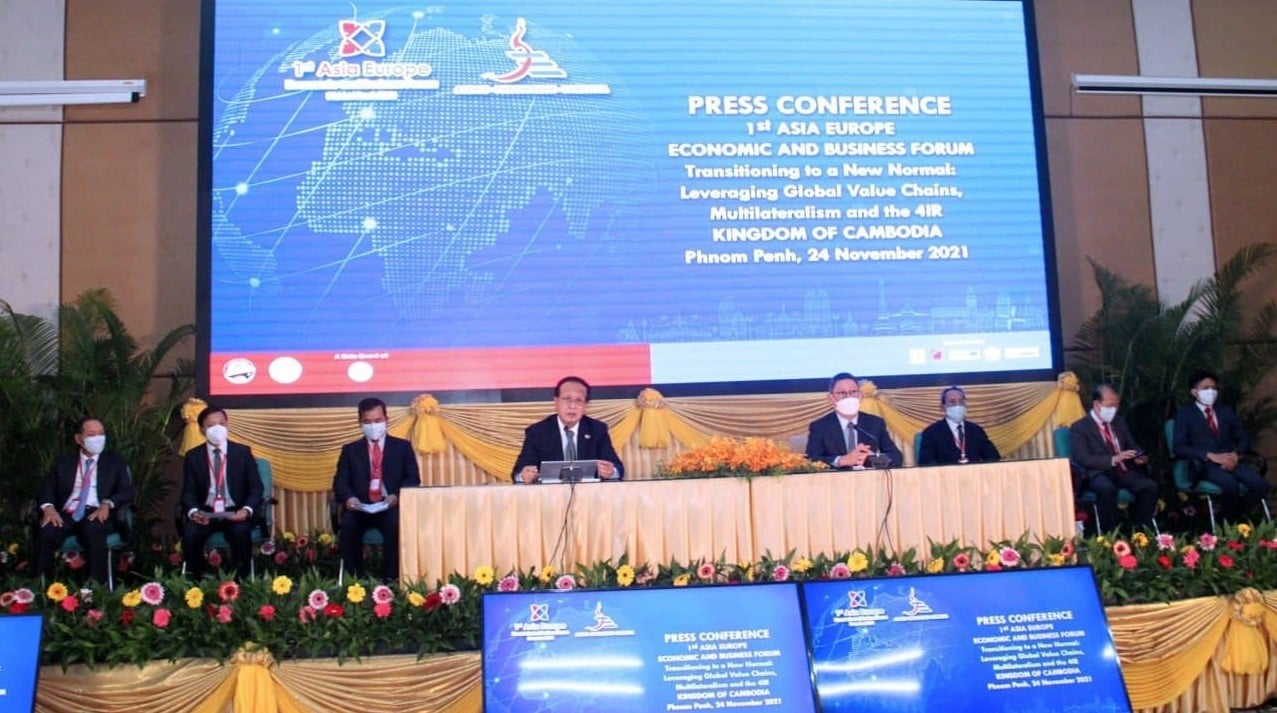ភ្នំពេញ ៖ វេទិកាសេដ្ឋកិច្ច និងធុរកិច្ចអាស៊ី-អឺរ៉ុប បានប្រព្រឹត្តទៅយ៉ាងរលូនកាលពីថ្ងៃទី២៤ វិច្ឆិកា ឆ្នាំ២០២១ម្សិលមិញនេះ តាមប្រព័ន្ធអនឡាញ។ វេទិកានេះរាប់ចូលជាព្រឹត្តិការណ៍អមយ៉ាងសំខាន់របស់កិច្ចប្រជុំកំពូល ASEM ដែលមានកម្ពុជាជាម្ចាស់ផ្ទះដឹកនាំកិច្ចប្រជុំ និងចាប់ផ្តើមធ្វើឡើងនៅថ្ងៃទី២៥ ខែវិច្ឆិកានេះ។