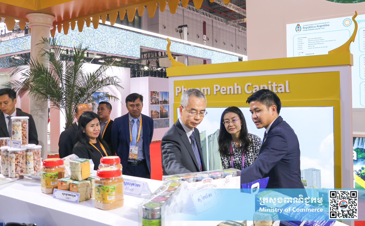 ក្រសួងពាណិជ្ជកម្ម បានសម្របសម្រួលស្តង់ពាណិជ្ជចំនួន ៨៩ សម្រាប់ពិព័រណ៍ចិន-អាស៊ាន ដែលមានក្រុមហ៊ុន និងសមាគមចំនួន ៥៨ បានចូលរួម ដោយដាក់តាំងបង្ហាញផលិតផលសម្គាល់ភូមិសាស្ត្រ ផលិតផលកសិកម្ម ផលិតផលឧស្សាហកម្ម វាយនភ័ណ្ឌ សូត្រ គ្រឿងអលង្ការ ការវិនិយោគ និងសេវាកម្មទេសចរណ៍ និងបានរៀបចំទីតាំងរួមទំហំ៥៤ ម៉ែត្រការ៉េ ដើម្បីបង្ហាញផលិតផលកម្ពុជាដែលមានសក្តានុពលជាមួយនឹងការវេចខ្ចប់ដ៏ប្រណិតសម្រាប់អ្នកទស្សនា និងផ្សព្វផ្សាយពីគេហទំព័រ CambodiaTrade.com ៕