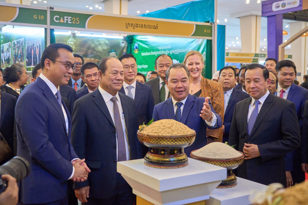 ភ្នំពេញ ៖ ស្របតាមផែនការដែលបានគ្រោងទុក វេទិកា និងពិព័រណ៍កសិកម្មកម្ពុជា ឆ្នាំ២០២៥ ហៅកាត់ CAFE25 បានប្រារព្វឡើងរយៈពេល៤ថ្ងៃ ចាប់ពីព្រឹកថ្ងៃទី១៣-១៦ ខែវិច្ឆិកា ឆ្នាំ២០២៥ នៅមជ្ឈមណ្ឌលសន្និបាត និងពិព័រណ៍កោះពេជ្រ ក្រោមអធិបតីភាព ឯកឧត្តម បណ្ឌិតសភាចារ្យ អ៊ុក រ៉ាប៊ុន ទេសរដ្ឋមន្រ្តីទទួលបន្ទុកបេសកកម្មពិសេស ប្រធានក្រុមប្រឹក្សាស្ដារអភិវឌ្ឍន៍វិស័យកសិកម្ម និងជនបទ តំណាងដ៏ខ្ពង់ខ្ពស់ សម្ដេចមហាបវរធិបតី ហ៊ុន ម៉ាណែត នាយករដ្ឋមន្ត្រីនៃកម្ពុជា ដោយមានដាក់តាំងបង្ហាញ និងលក់កសិផល , ផលិតផលកសិកម្ម ព្រមទាំងគ្រឿងចក្រ និងសេវាកម្មពាក់ព័ន្ធនឹងវិស័យជាង ៤០០ប្រភេទ ។