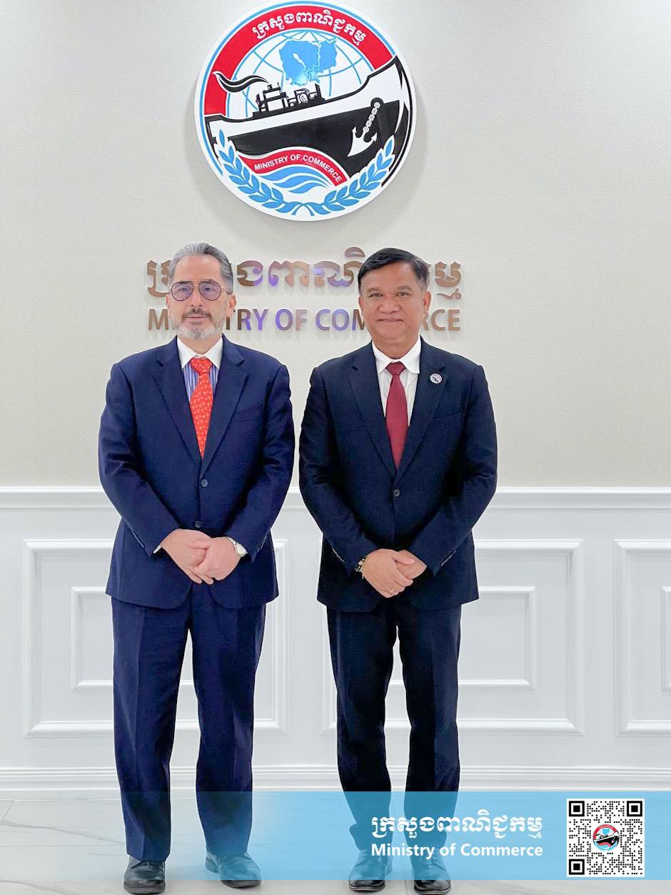 ការសន្យាជំរុញកិច្ចសហប្រតិបត្តិការនេះ បានកើតឡើងនៅក្នុងជំនួបពិភាក្សាការងាររវាងឯកឧត្តម រដ្ឋ សារ៉ាវុធ រដ្ឋលេខាធិការក្រសួងពាណិជ្ជកម្ម និងឯកឧត្តម Ricardo Estanislao Morote Canales ឯកអគ្គរដ្ឋទូតប្រទេសប៉េរូប្រចាំកម្ពុជា នារសៀលថ្ងៃពុធ ទី៤ ខែមិថុនា ឆ្នាំ២០២៥ នៅទីស្ដីការក្រសួងពាណិជ្ជកម្ម។