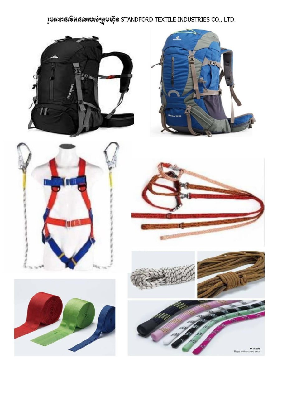 ៦-“STANDFORD TEXTILE INDUSTRIES CO., LTD.” គម្រោងបង្កើតរោងចក្រផលិតកាបូប ខ្សែបូ ខ្សែពួរ ខ្សែសុវត្ថិភាពនិងខ្សែក្រវាត់ការពារសុវត្ថិភាពសម្រាប់សត្វចិញ្ចឹម ដែលមានទីតាំងវិនិយោគស្ថិតនៅគីឡូម៉ែត្រទី២៧ ផ្លូវជាតិលេខ៣ ភូមិក្រាំងទ្រា ឃុំព្រះនិព្វាន្ត ស្រុកគងពិសី ខេត្តកំពង់ស្ពឺ ក្នុងទុនវិនិយោគប្រមាណ ៥,២លានដុល្លារអាម៉េរិក និងអាចបង្កើតការងារបានចំនួន ៧៥៨កន្លែង។