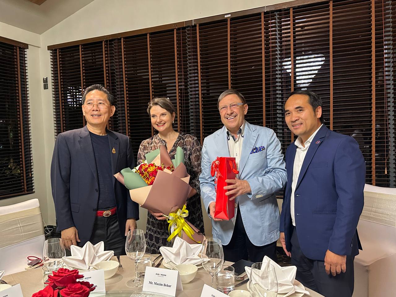 ភ្នំពេញ៖ អ្នកជំនួញកម្ពុជា បានជួបជុំជជែក ពិភាក្សា និងទទួលទានអាហារពេលល្ងាចជាមួយ លោក Maxim Behar ប្រធានក្រុមប្រឹក្សាភិបាល និងជាប្រធាននាយកប្រតិប្រតិ្តក្រុមហ៊ុន M3 Communications Group នាល្ងាចថ្ងៃទី២០ ខែតុលា ឆ្នាំ២០២៥ នៅសណ្ឋាគារ សាន់ អេន មូន រាជធានីភ្នំពេញ។
