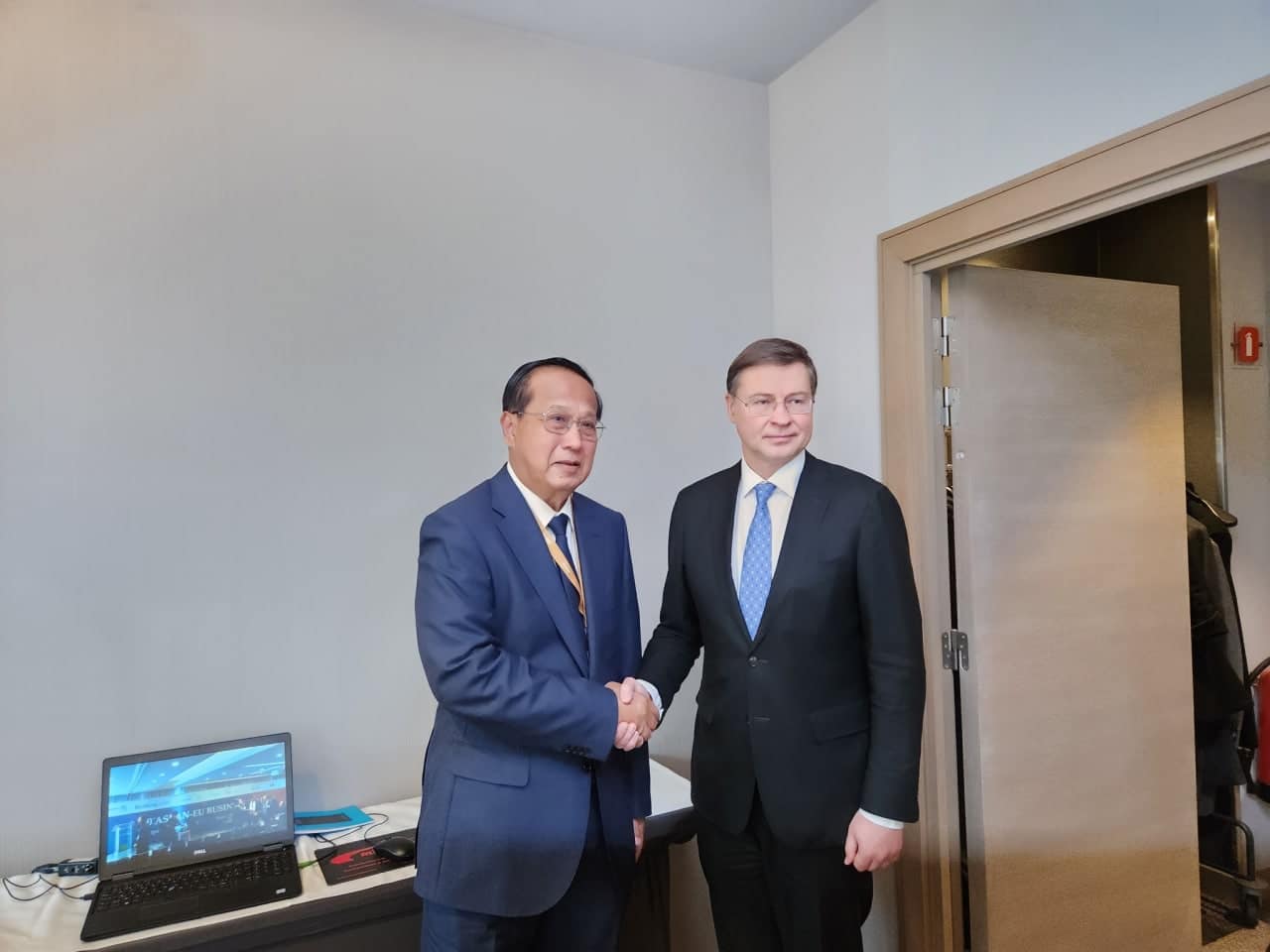 ការប្តេជ្ញាចិត្តនេះ ត្រូវបានឯកឧត្តម ប៉ាន សូរស័ក្តិ រដ្ឋមន្ត្រីក្រសួងពាណិជ្ជកម្មកម្ពុជា បានថ្លែងនៅក្នុងជំនួបពិភាក្សា ជាមួយលោក Valdis Dombrovskis អនុប្រធានប្រតិបត្តិ និងជាស្នងការពាណិជ្ជកម្មសហភាពអឺរ៉ុប នៅទីក្រុង ព្រុចសែល ប្រទេសបែលហ្សិក កាលពីថ្ងៃចុងសប្ដាហ៍កន្លងទៅនេះ។