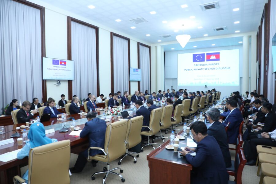 ភ្នំពេញ ៖ ឯកឧត្ដម ស៊ុន ចាន់ថុល ឧបនាយករដ្ឋមន្រ្តី អនុប្រធានទី១ ក្រុមប្រឹក្សាអភិវឌ្ឍន៍កម្ពុជា និងឯកឧត្តម អ៊ីហ្គ័រ ឌ្រីសមែន្ស (Igor Driesmans) ឯកអគ្គរដ្ឋទូតវិសាមញ្ញ និងពេញសមត្ថភាពនៃសហភាពអឺរ៉ុបប្រចាំព្រះរាជាណាចក្រកម្ពុជា នារសៀលថ្ងៃអង្គារ ទី១៧ ខែកញ្ញា ឆ្នាំ២០២៤ ម្សិលមិញនេះ បានដឹកនាំកិច្ចសន្ទនារវាងរដ្ឋ និងឯកជន កម្ពុជា-សហភាពអ៊ឺរ៉ុប លើកទី១ ដោយមានការចូលរួមពីតំណាងក្រសួង-ស្ថាប័នពាក់ព័ន្ធ, ឯកឧត្តម ហ្សាក់ ប៉ឺឡេ (Jacques Pellet ) ឯកអគ្គរដ្ឋទូតសាធារណរដ្ឋបារាំងប្រចាំព្រះរាជាណាចក្រកម្ពុជា, ប្រធានសភាពាណិជ្ជកម្មអឺរ៉ុបនៅកម្ពុជា (EuroCham), តំណាងក្រុមប្រឹក្សាធុរកិច្ចសហភាពអ៊ឺរ៉ុប-អាស៊ាន (EU-ABC), វិស័យឯកជន និងមន្ត្រីជំនាញជាច្រើនរូប។