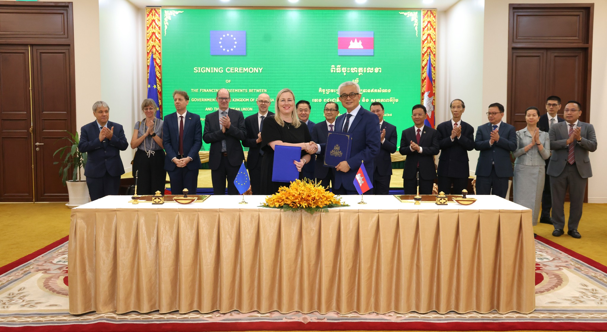 កិច្ចព្រមព្រៀងហិរញ្ញប្បទានឥតសំណង ដែលមានទំហំសរុបចំនួន ៧៩ លានអឺរ៉ូ សម្រាប់គាំទ្រកម្មវិធីទាំង ៤ រួមមាន៖ ១៖ កម្មវិធីភាពជាដៃគូដើម្បីនិរន្តរភាពប្រព័ន្ធកសិកម្ម និងស្បៀងនៅកម្ពុជា(Cambodia Partnership for Sustainable Agriculture and Food Systems – EU CAPSAFE) មានថវិកាសរុបពីសហភាពអឺរ៉ុប ចំនួន ១៧ លានអឺរ៉ូ ឬប្រមាណ ១៨.៤ លានអឺរ៉ូ និងសហហិរញ្ញប្បទាន ពីប្រទេសអាល្លឺម៉ង់ ចំនួន ៧.៣ លានអឺរូ ឬប្រមាណ ៧.៨ លានដុល្លារអាម៉េរិក។ ២៖ កម្មវិធីភាពជាដៃគូសហភាពអឺរ៉ុប ដើម្បីការប្រើប្រាស់ថាមពលដោយចីរភាពក្នុងឧស្សាហកម្ម (EU Partnership for Sustainable Energy Practices in Industry) មានថវិកាសរុប ចំនួន ៦ លានអឺរ៉ូ ឬប្រមាណ ៦.៥ លានដុល្លារអាម៉េរិក។ ៣៖ កម្មវិធីភាពជាដៃគូសហភាពអឺរ៉ុប-កម្ពុជា សម្រាប់ការបណ្ដុះបណ្ដាលបច្ចេកទេស ២០២៤-២០២៧ (Transforming Technical Education EU-Cambodia Partnership 2024-2027) មានថវិកាសរុប ចំនួន ៤៩ លានអឺរ៉ូ ឬប្រមាណ ៥៣.១ លានដុល្លារអាម៉េរិក។ ៤៖ កម្មវិធីភាពជាដៃគូសហភាពអឺរ៉ុប ដើម្បីបើកច្រកទៅកាន់ទីផ្សារសកល និងជំនាញពាណិជ្ជកម្ម (European Union Global Access and Trade Expertise) មានថវិកាសរុបពីសហភាពអឺរ៉ុប ចំនួន ៧ លានអឺរ៉ូ ឬប្រមាណ ៧.៦ លានអឺរ៉ូ និងសហហិរញ្ញប្បទានពីប្រទេសអាល្លឺម៉ង់ ចំនួន ៣ លានអឺរូ ឬប្រមាណ ៣.៣ លានដុល្លារអាម៉េរិក។
