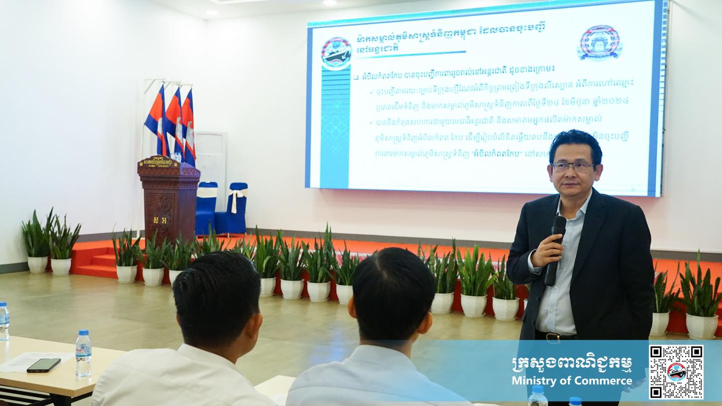 នេះជាការបញ្ជាក់អះអាងរបស់ឯកឧត្តម វ៉េង សុធី រដ្ឋលេខាធិការនៃក្រសួងពាណិជ្ជកម្ម នៅក្នុងវគ្គបណ្តុះបណ្តាលស្តីពី “កម្មសិទិ្ធបញ្ញា៖ ទិដ្ឋភាពទូទៅ អត្ថប្រយោជន៍ ការការពារទ្រព្យកម្មសិទ្ធិបញ្ញា និងនីតិវិធីនៃការចុះបញ្ជីម៉ាកសម្គាល់ភូមិសាស្ត្រទំនិញ”នៅខេត្តសៀមរាបកាលពីពាក់កណ្តាលសប្តាហ៍នេះ។