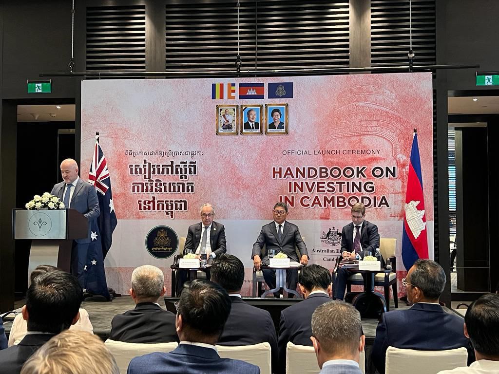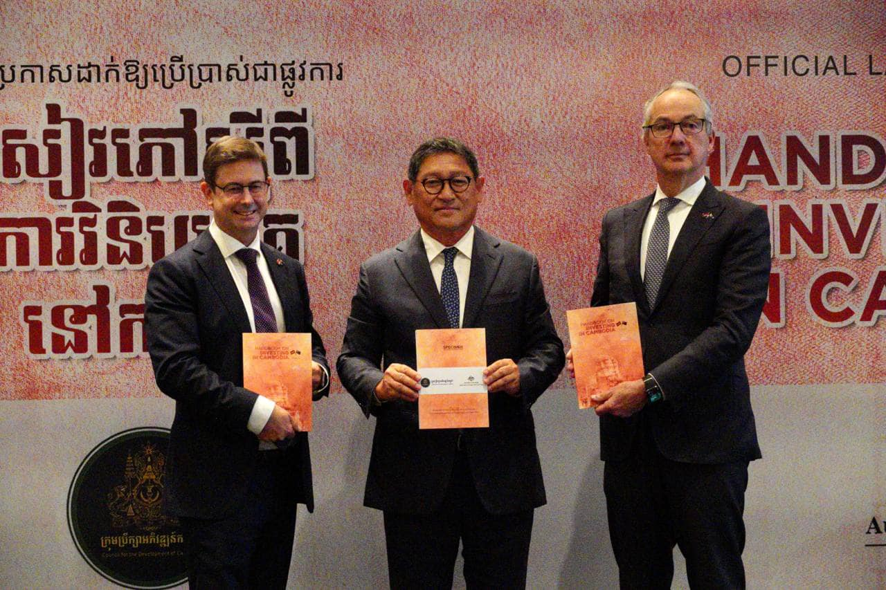 ភ្នំពេញ ៖ សៀវភៅស្ដីពីការវិនិយោគនៅក្នុងប្រទេសកម្ពុជា ត្រូវបានប្រកាសឱ្យប្រើប្រាស់ជាផ្លូវការកាលពីថ្ងៃទី១០ កក្កដា ២០២៣ នៅសណ្ឋាគារ Rosewood ក្រោមអធិបតីភាពឯកឧត្តម សុខ ចិន្ដាសោភា រដ្ឋមន្ត្រីប្រតិភូអមនាយករដ្ឋមន្ត្រី និងជាអគ្គលេខាធិការក្រុមប្រឹក្សាអភិវឌ្ឍន៍កម្ពុជា និង លោក Nicholas Moore បេសកជនពិសេសទទួលបន្ទុកកិច្ចការអាស៊ីអាគ្នេយ៍ នៃប្រទេសអូស្ត្រាលី ។