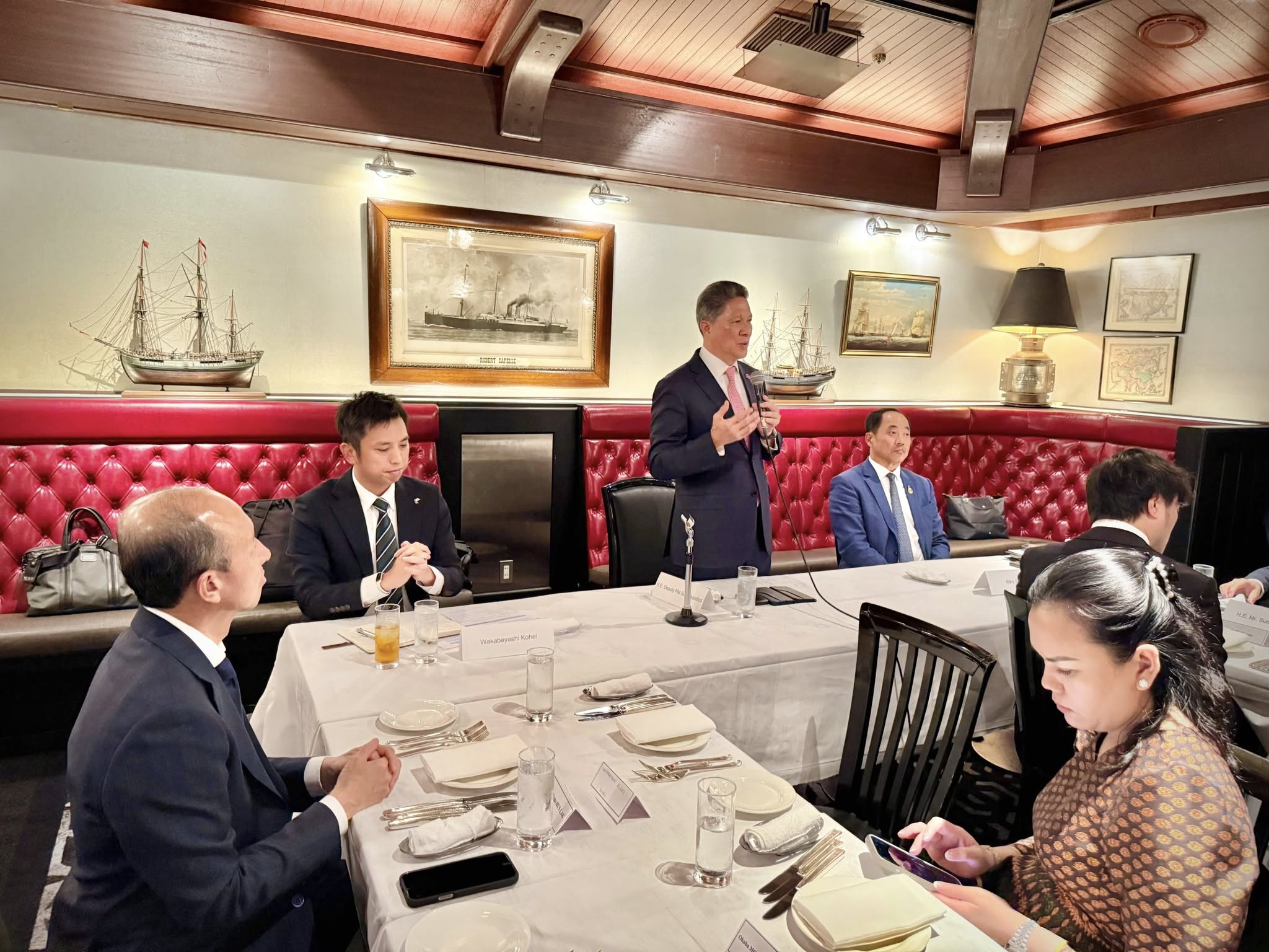 ក្នុងឱកាសនោះដែរ គណៈប្រតិភូនៃសមាគមឧកញ៉ាកម្ពុជា ក៏បានជម្រាបជូនបណ្តាធុរជន និងវិនិយោគិនជប៉ុនអំពីតួនាទីរបស់សមាគមឧកញ៉ាកម្ពុជា ដែលជាដៃគូមួយរបស់រាជរដ្ឋាភិបាលកម្ពុជាក្នុងសកម្មភាពពាណិជ្ជកម្ម និងជំរុញវិនិយោគសំដៅបង្កើតការងារជូនប្រជាពលរដ្ឋ។ ទន្ទឹមនឹងនេះ ក៏បានលើកឡើងនូវបទពិសោធជាក់ស្តែងក្នុងនាមជាធុរជនដែលកំពុងប្រកបអាជីវកម្មនៅក្នុងប្រទេសកម្ពុជាអំពីលទ្ធផល ក៏ដូចជាកត្តាអំណោយផល បរិយាកាសវិនិយោគ និងសក្តានុពលនានាដែលប្រទេសកម្ពុជាមាន ទាំងលើវិស័យកសិ-ពាណិជ្ជកម្ម ថាមពល និងទេសចរណ៍ជាដើម៕