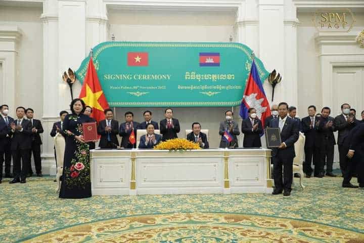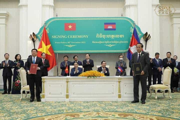 នៅព្រឹកថ្ងៃទី៨ ខែវិច្ឆិកា ឆ្នាំ២០២២នេះ បន្ទាប់ពីជំនួបទ្វេភាគីរួចហើយនោះ សម្ដេចអគ្គមហាសេនាបតីតេជោ ហ៊ុន សែន នាយករដ្ឋមន្ត្រី នៃព្រះរាជាណាចក្រកម្ពុជា និងឯកឧត្តម ផាម មិញជិញ(Pham Minh Chinh)នាយករដ្ឋមន្ត្រី នៃសាធារណរដ្ឋសង្គមនិយមវៀតណាម បានអញ្ជើញជាសហធិបតី ក្នុងពិធីចុះហត្ថលេខាលើឯកសារសំខាន់ៗចំនួន១១ ក្នុងនោះរួមមាន៖