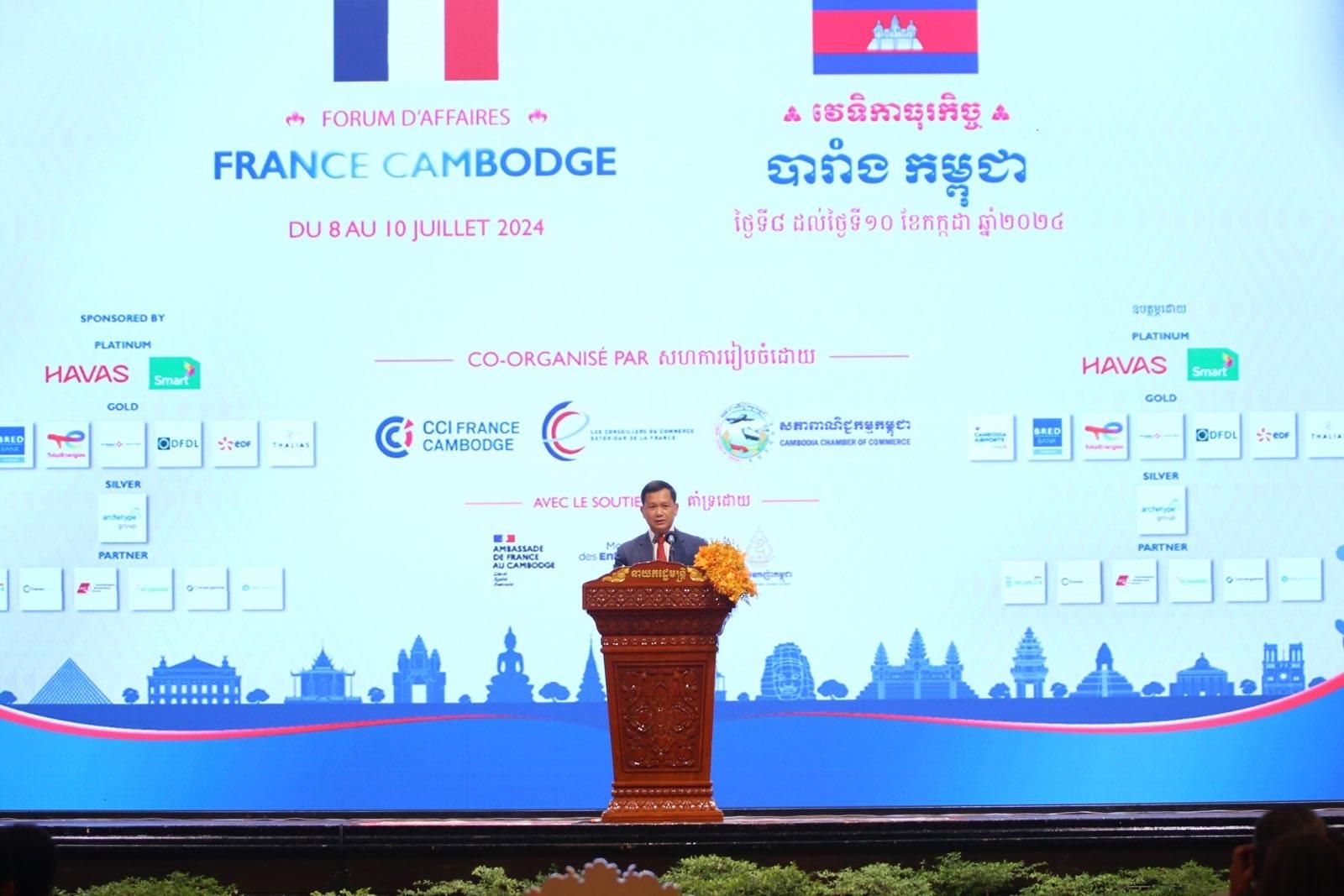 ថ្លែងក្នុងពិធីបើកវេទិកាធុរកិច្ចកម្ពុជា-បារាំង នាថ្ងៃទី ៨ កក្កដានេះ សម្ដេចធិបតី នាយករដ្ឋមន្ត្រីនៃ ព្រះរាជាណាចក្រកម្ពុជាបានឱ្យដឹងថា៖