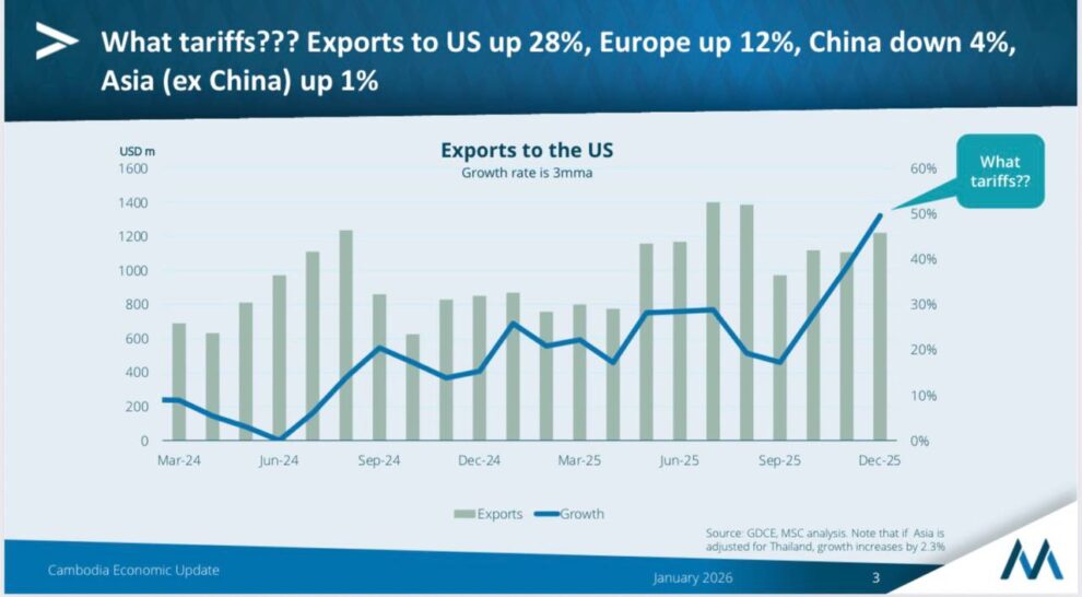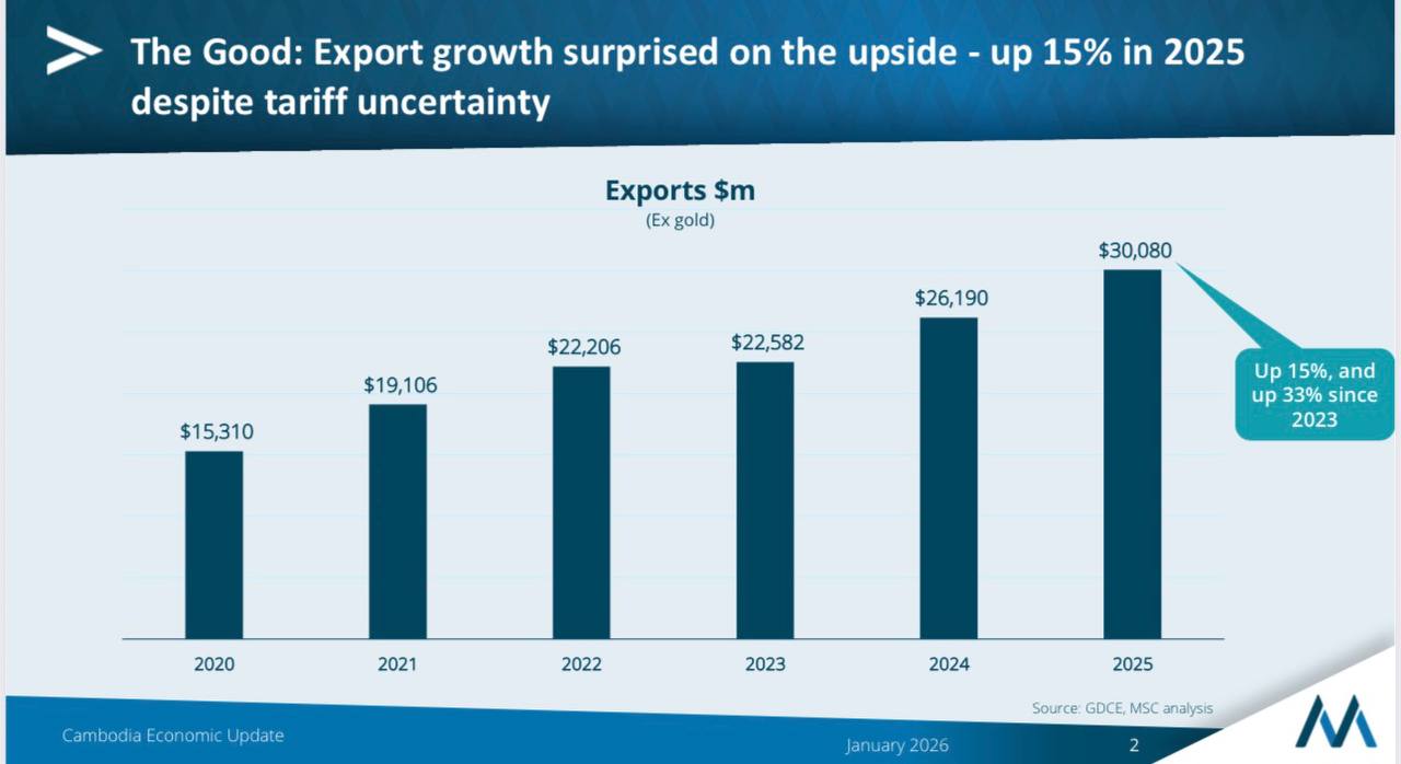 ភ្នំពេញ៖ បើទោះជាមានភាពមិនប្រាកដប្រជាលើបញ្ហាពន្ធគយ និងវិបត្តិសាកលក៏ដោយ ការនាំចេញរបស់កម្ពុជានៅឆ្នាំ២០២៥ បានកើនឡើងរហូតដល់ជាង១៥ភាគរយ។ នេះបើយោងតាមសភាពាណិជ្ជកម្មអន្តរជាតិ(International Business Chamber-IBC)។