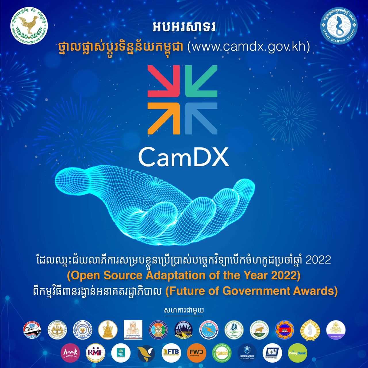 សូមបញ្ជាក់ថា រាជរដ្ឋាភិបាលកម្ពុជាបានដាក់ឱ្យប្រើប្រាស់ថ្នាល CamDX ជាផ្លូវការកាលពីខែមិថុនា ឆ្នាំ២០២២ ដើម្បីធានាបាននូវការធ្វើកូដនីយកម្មទិន្នន័យ ការប្រើប្រាស់បច្ចេកវិទ្យាហត្ថលេខាឌីជីថល​​​ ក៏ដូចជាការធ្វើកំណត់ត្រាអេឡិចត្រូនិកនៃការផ្លាស់ប្តូរទិន្នន័យ​ អាចដំណើរការទៅដោយសុវត្ថិភាព សុចរិតភាព និងភាពត្រឹមត្រូវ។​ ថ្នាល CamDx ទទួលបានទទួល​ជ័យលាភី​នៃ​ពានរង្វាន់​ការ​សម្រប​ខ្លួន​ប្រើប្រាស់​បច្ចេកវិទ្យា​បើកចំហ​កូដ​ប្រចាំឆ្នាំ២០២២ (Open Source Adaptation of the Year) ពីពានរង្វាន់​អនាគត​នៃ​រដ្ឋាភិបាល​ (Future of Govern​me​nt Awards) ដែលជា​កិច្ចសហការ​គាំទ្រ​រវាង​វិទ្យាស្ថាន Amazon Web Services អង្គការកម្មវិធីអភិវឌ្ឍន៍សហប្រជាជាតិ (UNDP) និង​បណ្ដាញ​សកល​សម្រាប់​រដ្ឋាភិបាល Apolitical​។​
