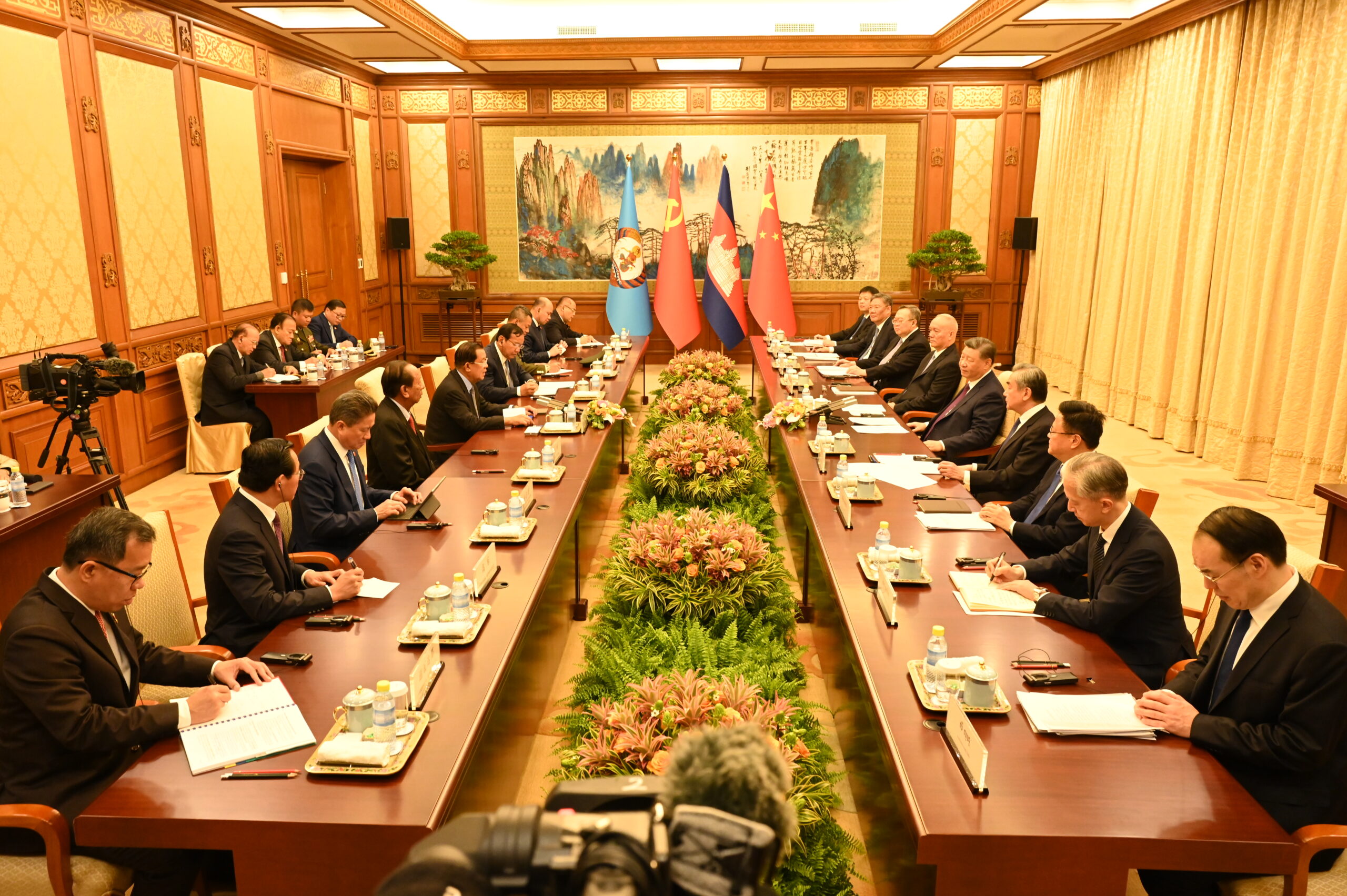 ក្នុងអំឡុងពេលនៃកិច្ចពិភាក្សារវាងភាគីទាំងពីរ ប្រធានាធិបតីចិន លោក ស៊ី ជីនពីង បានសន្យាបន្តគាំទ្រដល់កម្ពុជាក្នុងការដើរតួនាទីឲ្យកាន់តែធំនៅក្នុងកិច្ចការអន្តរជាតិ និងតំបន់។ ទីក្រុងប៉េកាំងគាំទ្រសមាគមប្រជាជាតិអាស៊ីអាគ្នេយ៍ក្នុងការរក្សាស្វ័យភាពជាយុទ្ធសាស្រ្តរបស់ខ្លួន និងរក្សាបាននូវភាពជាកណ្តាលរបស់ខ្លួន ហើយប្រទេសចិនប្រឆាំងយ៉ាងម៉ឺងម៉ាត់ចំពោះគំនិតនៃសង្រ្គាមត្រជាក់។