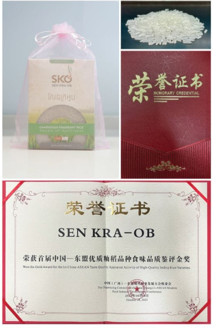 យោងតាមសេចក្តីប្រកាសព័ត៌មានពីសហព័ន្ធស្រូវអង្ករកម្ពុជាបានបញ្ជាក់ថា នៅថ្ងៃទី៣១ ខែតុលា ថា អង្ករម៉ាកសមូហភាព SKO ដែលផលិតចេញពីពូជស្រូវសែនក្រអូប នៅក្នុងឆ្នាំ២០២៣ ត្រូវបានឈ្នះពានរង្វាន់មាសនៅក្នុងកម្មវិធីវាយតម្លៃគុណភាព រសជាតិប្រភេទអង្ករសគ្រាប់វែងចិន-អាស៊ាន លើកទី១ ( 1st China-ASEAN Taste Quality Appraisal Activities of High-Quality Indica Rice Variety)។