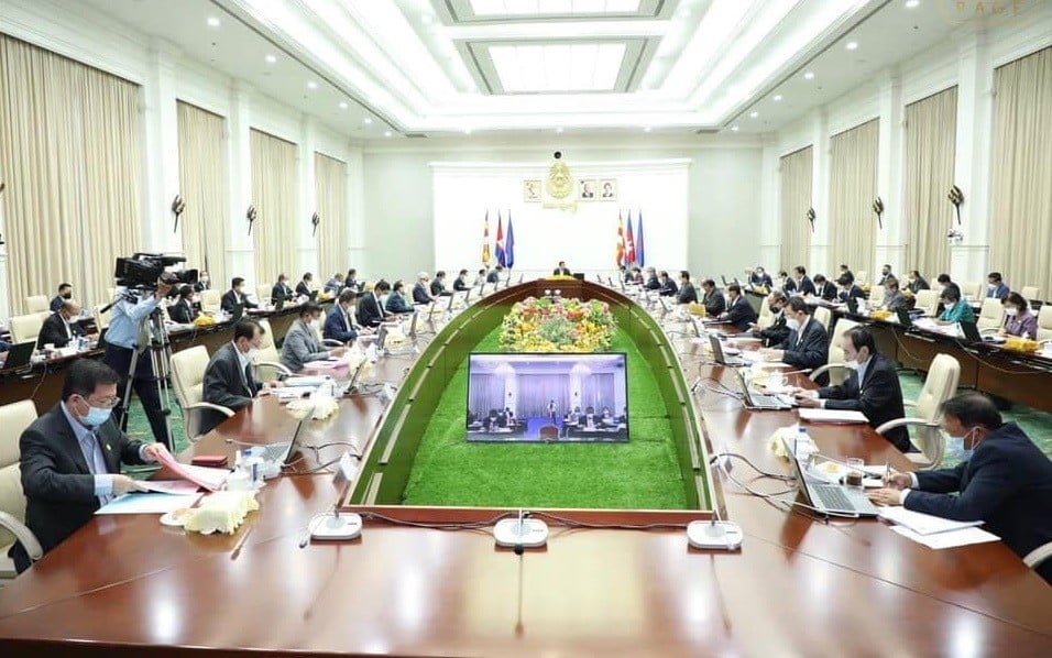 សូមបញ្ជាក់ថា នៅថ្ងៃព្រហស្បតិ៍ ថ្ងៃទី១៦ ខែធ្នូ ឆ្នាំ២០២១ វេលាម៉ោង ៨:៣០នាទីព្រឹក នៅទីស្តីការគណៈរដ្ឋមន្រ្តី (វិមានសន្តិភាព )គណៈរដ្ឋមន្រ្តី បានបើកកិច្ចប្រជុំពេញអង្គក្រោមអធិបតីភាពដ៏ខ្ពង់ខ្ពស់សម្តេចអគ្គមហាសេនាបតីតេជោ ហ៊ុន សែន នាយករដ្ឋមន្រ្តីនៃព្រះរាជាណាចក្រកម្ពុជា ដើម្បីពិភាក្សា និងឆ្លងលើរបៀបវារៈដូចខាងក្រោម៖
