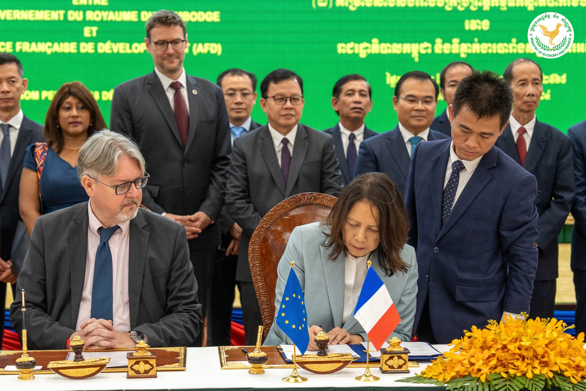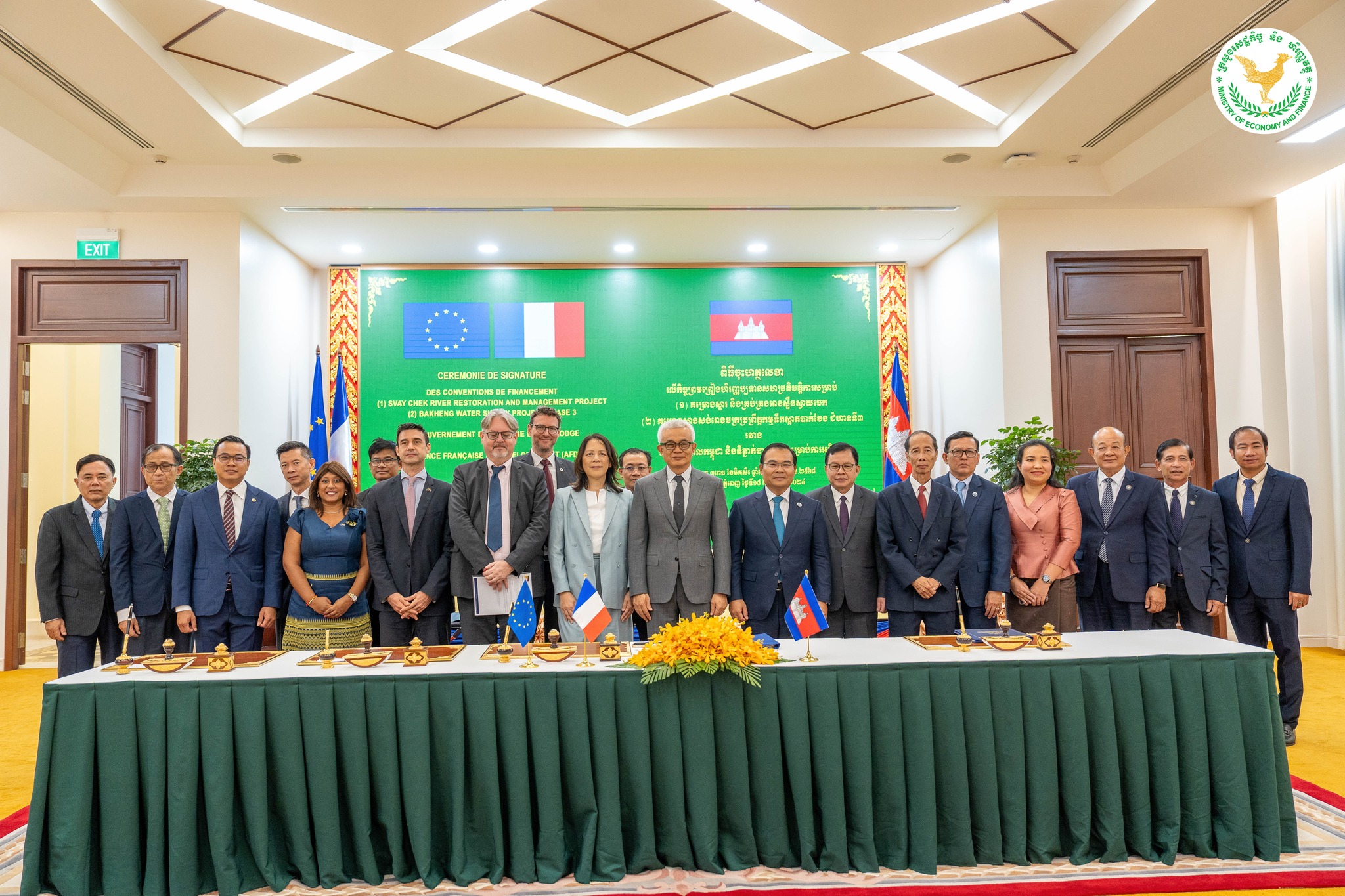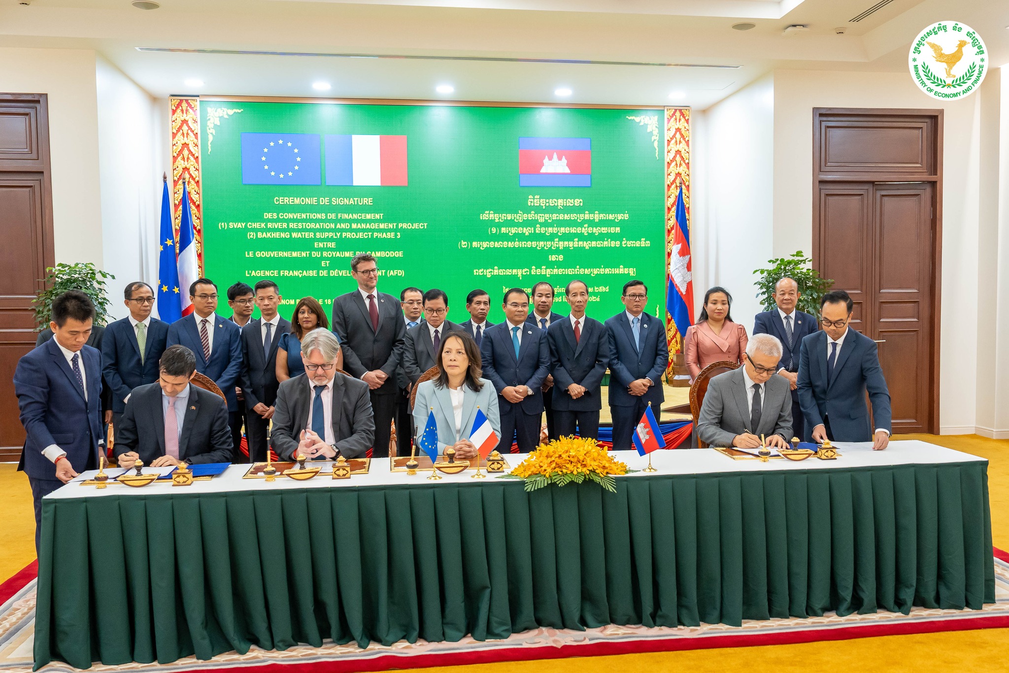 គួររំលឹកថា កិច្ចព្រព្រៀងទាំងបីបានត្រូវចុះហត្ថលេខានាពេលថ្មីៗនេះដោយឯកឧត្តមអគ្គបណ្ឌិតសភាចារ្យអូន ព័ន្ធមុនីរ័ត្ន ឧបនាយករដ្ឋមន្ត្រី រដ្ឋមន្ត្រីក្រសួងសេដ្ឋកិច្ចនិងហិរញ្ញវត្ថុ លោកស្រី Sandrine Boucher នាយិកា AFD , លោក Fabrice Etienne ភារធារីស្ដីទីនៃទូតបារាំងប្រចាំនៅព្រះរាជាណាចក្រកម្ពុជា,និងលោក Bryan Fornari ប្រធានសហប្រតិបត្តិការនៃប្រតិភូសហភាពអឺរ៉ុបប្រចាំនៅព្រះរាជាណាចក្រកម្ពុជា។ គម្រោងទាំងនេះ នឹងជួយគាំទ្រដល់កិច្ចអភិវឌ្ឍន៍សង្គម និង សេដ្ឋកិច្ចនៅកម្ពុជា ដែលឆ្លើយតបទៅនឹងអាទិភាពនៃ “យុទ្ធសាស្ត្របញ្ចកោណ ដំណាក់កាលទី ១” របស់ រាជរដ្ឋាភិបាលកម្ពុជា ស្តីពីការបណ្តុះបណ្តាលជំនាញបច្ចេកទេស, ការលើកកម្ពស់ការតភ្ជាប់ និងបង្កើនប្រសិទ្ធភាព វិស័យដឹកជញ្ជូន និងវិស័យទឹកស្អាត,និងការលើកស្ទួយវិស័យកសិកម្មនិងការអភិវឌ្ឍជនបទ ៕