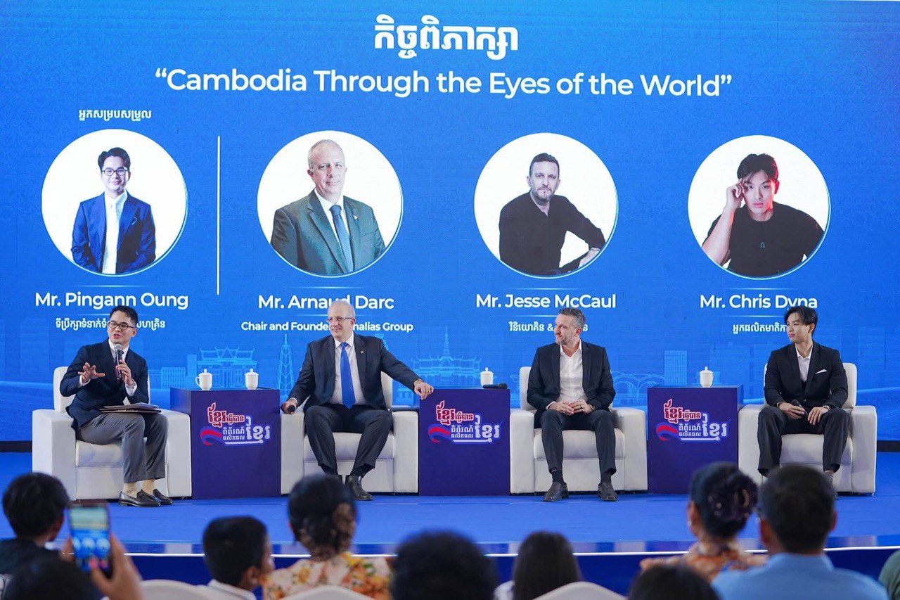 ភ្នំពេញ៖ ក្នុងអំឡុងពេលពិព័រណ៍ផលិតផលខ្មែរក្រោមប្រធានបទ «ខ្មែរធ្វើបាន៖ ចូលរួម ជំរុញ គាំទ្រ ផលិតផលក្នុងស្រុក» ចាប់ពីថ្ងៃទី២៦ ដល់ទី២៨ ខែកញ្ញា ឆ្នាំ២០២៥ នៅមជ្ឈមណ្ឌលមហាសន្និបាត និងពិព៍រណ៍កោះពេជ្រ រាជធានីភ្នំពេញ មានកិច្ចពិភាក្សាជាច្រើនក្រោមប្រធានបទផ្សេងៗគ្នា ដែលក្នុងនោះមានកិច្ចពិភាក្សាមួយបានលើកឡើងក្រោមប្រធានបទ «កម្ពុជា ក្រោមក្រសែភ្នែកពិភពលោក (Cambodia Through the Eyes of the World)»។