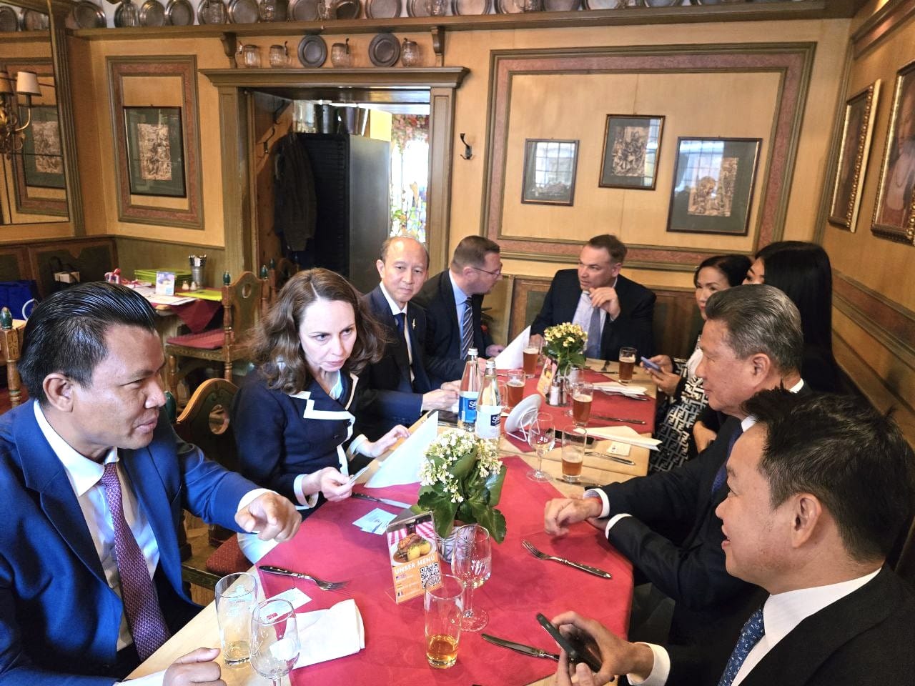 គណៈប្រតិភូកម្ពុជា ក៏បានជួបពិភាក្សាជាមួយលោកជំទាវអភិបាលរងក្រុងនួរេមប៊ើក ក្នុងគោលបំណងជំរុញបន្ថែមទៀតនូវកិច្ចសហប្រតិបត្តិការសេដ្ឋកិច្ចរួមគ្នារវាងក្រុងNurembergនិយាយដោយឡែក និងប្រទេសអាល្លឺម៉ង់និយាយជារួម ពិសេសលើកិច្ចការងារវិនិយោគ ការបណ្ដាក់ទុនធុរកិច្ច និងកិច្ចសហការនានាផ្សេងទៀតដែលនឹងលើកកម្ពស់ទំនាក់ទំនងភាគីទាំងពីរផងដែរ៕
