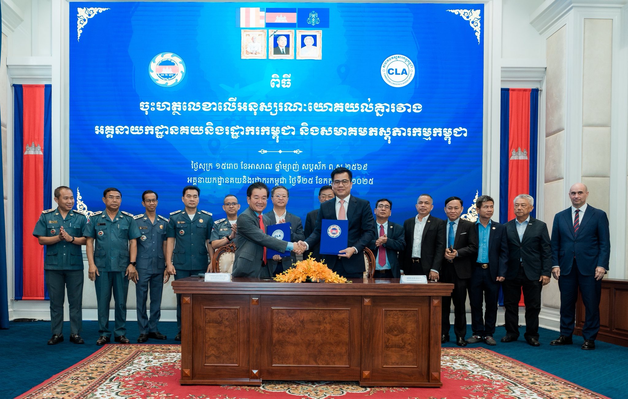 ពិធីចុះហត្ថលេខានេះ ក្រោមវត្តមាន ឯកឧត្តមបណ្ឌិត គុណ ញឹម រដ្ឋមន្ត្រីប្រតិភូអមនាយករដ្ឋមន្ត្រី អគ្គនាយកនៃអគ្គនាយកដ្ឋានគយ និងរដ្ឋាករកម្ពុជា និង លោក ហាក់ លាងហ៊ ប្រធានសមាគមភស្តុភារកម្មកម្ពុជា។