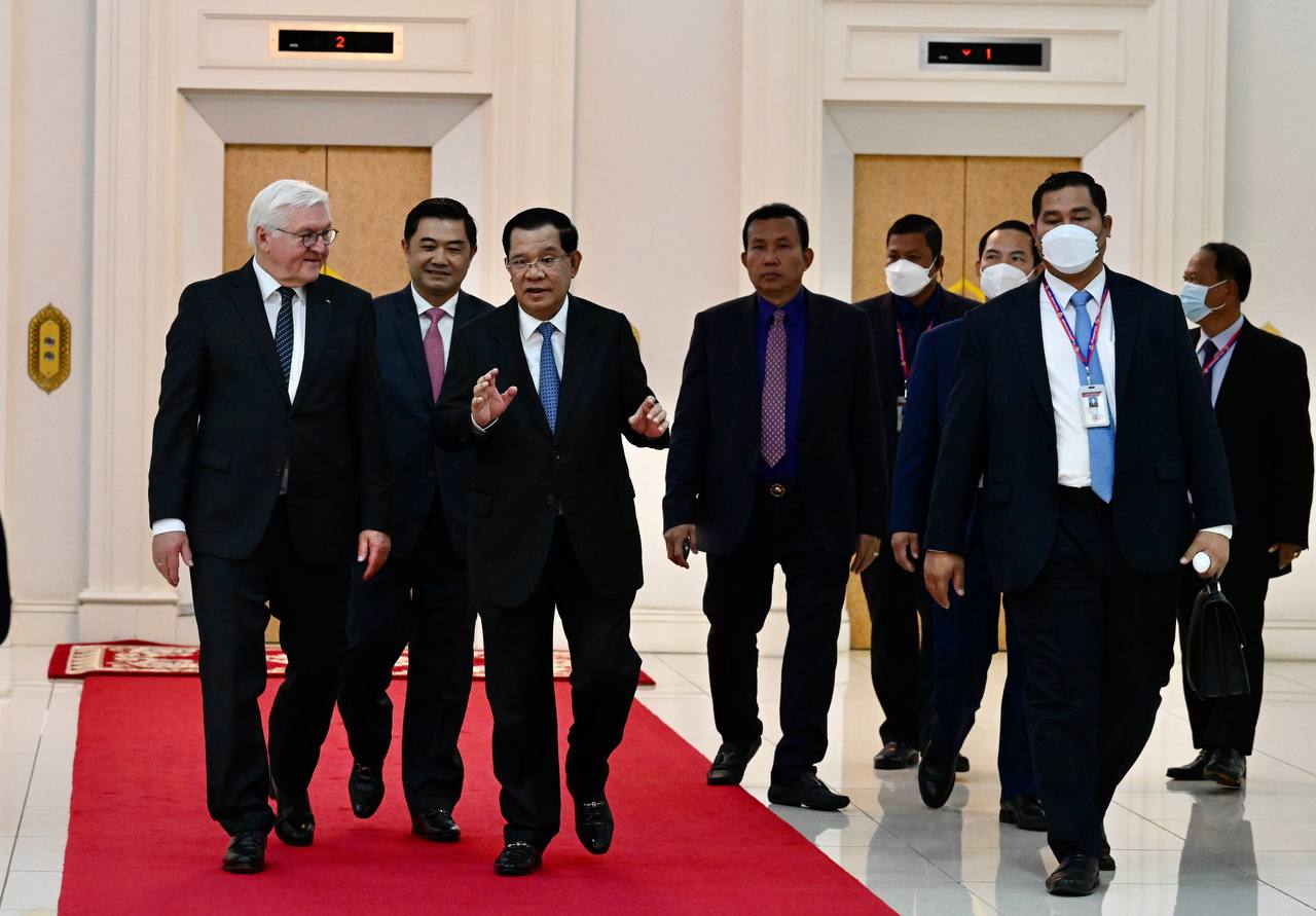 សូមបញ្ជាក់ថាដំណើរទស្សនកិច្ចរបស់ឯកឧត្តមបណ្ឌិត ហ្វ្រាំង វ៉ាល់ធ័រ ឆ្តែនម៉ៃយ័រ (Frank-Walter Steinmeier) ប្រធានាធិបតីសហព័ន្ធអាល្លឺម៉ង់នៅព្រះរាជាណាចក្រកម្ពុជា មានសារៈសំខាន់និងអត្ថន័យជាប្រវត្តិសាស្រ្ត ឆ្លុះបញ្ចាំងពីការយកចិត្តទុកដាក់ថែរក្សាពូនជ្រំចំណងមិត្តភាព និងកិច្ចសហប្រតិបត្តិការដ៏ល្អរវាងប្រទេសទាំងពីរ។ កម្ពុជា និងអាល្លឺម៉ង់ នឹងបន្តយកចិត្តទុកដាក់ពង្រឹងពង្រីកបន្ថែមទៀតនូវទំនាក់ទំនងទ្វេភាគី និងពហុភាគី ដើម្បីនាំមកនូវផលប្រយោជន៍ដ៏ធំធេងទៅវិញទៅមកសម្រាប់ប្រជាជន និងប្រទេសទាំងពីរនៅពេលអនាគត។