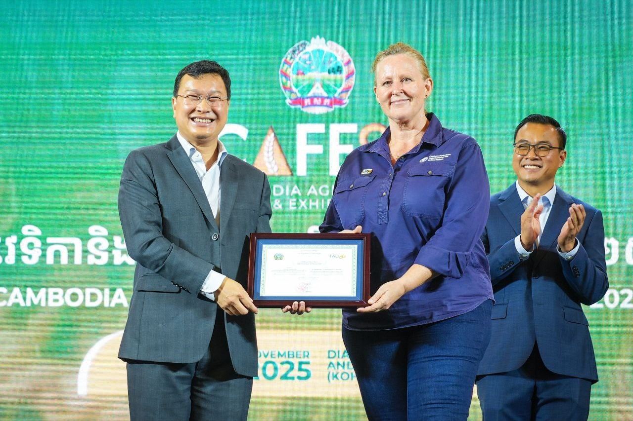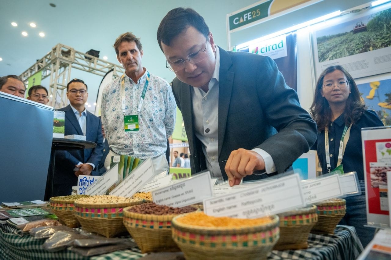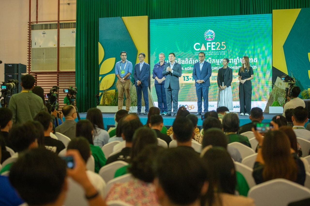សូមជម្រាបថា វេទិកា និងពិព័រណ៍កសិកម្មកម្ពុជាឆ្នាំ២០២៥ (CAFE25) ដែលធ្វើឡើងរយៈពេល៤ថ្ងៃ នៅមជ្ឈមណ្ឌលសន្និបាត និងពិព័រណ៍កោះពេជ្រ គឺជាព្រឹត្តិការណ៍កសិកម្មដ៏ធំលើកដំបូងបង្អស់នៅកម្ពុជា ដែលទទួលបានការគាំទ្រយ៉ាងសម្បើម និងជោគជ័យបំផុត ក្រោមការដឹកនាំរៀបចំដោយក្រសួងកសិកម្ម រុក្ខាប្រមាញ់ និងនេសាទ (MAFF) សហការជាមួយក្រសួង ស្ថាប័នពាក់ព័ន្ធ អង្គការស្បៀង និងកសិកម្មនៃសហប្រជាជាតិ (FAO) ព្រមទាំងដៃគូអភិវឌ្ឍន៍ និងវិស័យឯកជននានាជាច្រើន៕