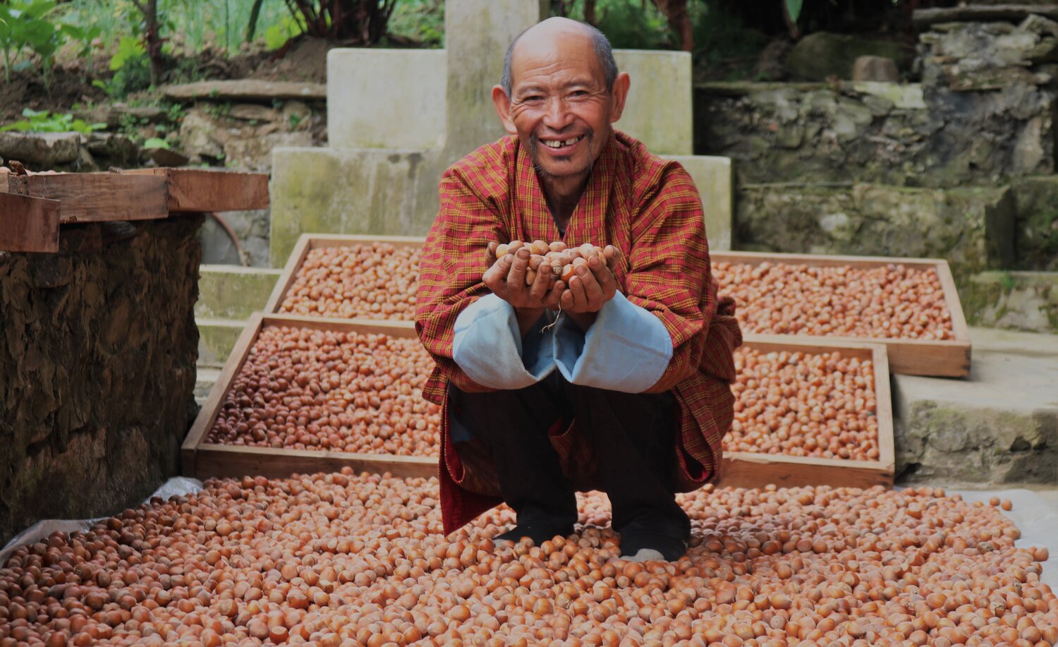 មិនត្រឹមតែប៉ុណ្ណោះ កសិករជាច្រើនបានចាប់អារម្មណ៍ក្នុងការចូលរួមអនុវត្តសកម្មភាពរបស់ Mountain Hazelnuts ដើម្បីដាំដំណាំ Hazelnuts នៅលើដីដែលខូចគុណភាព។ មុនពេលដាំដុះ Mountain Hazelnuts បានចុះពិនិត្យគ្រប់កន្លែង ដើម្បីពិចារណាពីផលប៉ះពាល់បរិស្ថាន។ បច្ចុប្បន្ននេះ Mountain Hazelnuts ធ្វើការជាមួយគ្រួសារតូចៗ និងក្រុមសហគមន៍ជាង ១៥ ០០០ នាក់នៅទូទាំងប្រទេស ដើម្បីផលិត និងប្រមូលផលគ្រាប់ Hazelnuts ។ អ្នកដាំដុះត្រូវបានផ្តល់ជូនជាមួយនឹងដើម Hazelnuts បូករួមទាំងការបណ្តុះបណ្តាលលើការអនុវត្តកសិកម្មមានគុណភាព អមដោយការចុះសួរសុខទុក្ខរៀងរាល់ពីរខែម្តងពីបុគ្គលិក Mountain Hazelnuts ដែលត្រូវបានដាក់ពង្រាយតំបន់ជាង ២០០ នាក់របស់ខ្លួន។ ក្រុមហ៊ុនប្រមូលទិញគ្រាប់ Hazelnuts ពីការប្រមូលផលទាំងអស់ ដែលមានគុណភាពអាចទទួលយកបាន ដោយដឹកជញ្ជូនគ្រាប់ទាំងនោះទៅរោងចក្រកែច្នៃរបស់ខ្លួនសម្រាប់ការសម្ងួតបន្ថែម ការដាក់តម្រៀបតាមទំហំ និងដំណើរការបន្ថែមផ្សេងៗ ដើម្បីរៀបចំនាំចេញទៅកាន់ទីផ្សារអន្តរជាតិ។ រហូតមកទល់ពេលនេះ ដើម Hazelnuts ជាង ៧ លានដើមត្រូវបានដាំដុះទាំងស្រុងនៅលើដីទំនាប ឬ ដីដែលខូចគុណភាព ហើយដើមឈើប្រភេទនេះស័ក្តិសមឥតខ្ចោះទៅនឹងលក្ខខណ្ឌភ្នំ និងអាកាសធាតុរបស់ប្រទេសប៊ូតាន។ នៅដំណាក់ប្រមូលផល ក្រុមហ៊ុនរំពឹងថាទិន្នផលជាមធ្យមលើសពី ៤ គីឡូក្រាមក្នុងមួយដើម។