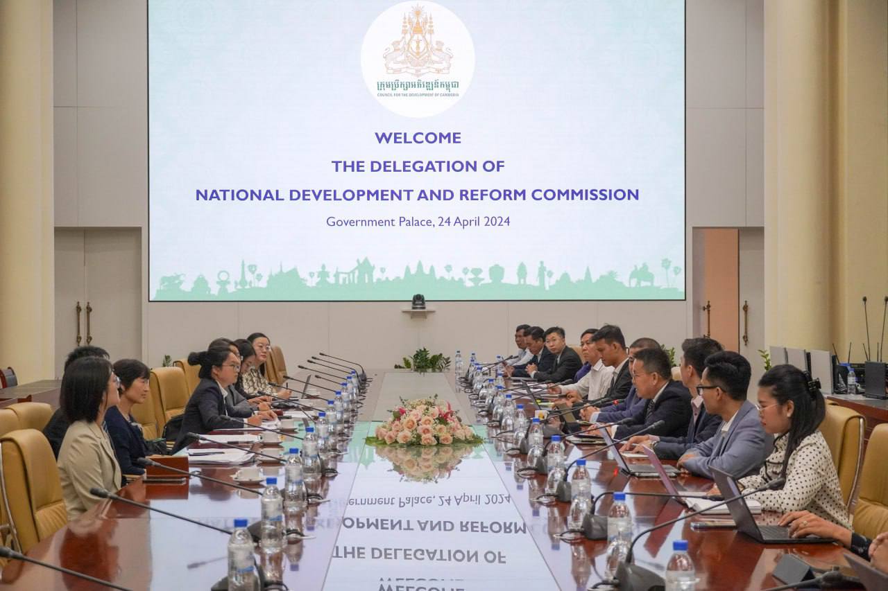 នៅទីស្តីការក្រុមប្រឹក្សាអភិវឌ្ឍន៍កម្ពុជា កាលពីព្រឹកថ្ងៃទី២៤ ខែមេសា ឆ្នាំ២០២៤ ភាគីទាំងពីរបានពិភាក្សា និងផ្លាស់ប្តូរយោបល់លើគំនិតនៃផែនការសហប្រតិបត្តិការសម្រាប់ការអភិវឌ្ឍន៍ច្រករបៀងឧស្សាហកម្ម និងបច្ចេកវិទ្យា ដែលនឹងរួមចំណែកក្នុងការពង្រឹង និងពង្រីកវិបុលភាពនៃសហគមន៍ជោគវាសនារួមកម្ពុជា-ចិន។