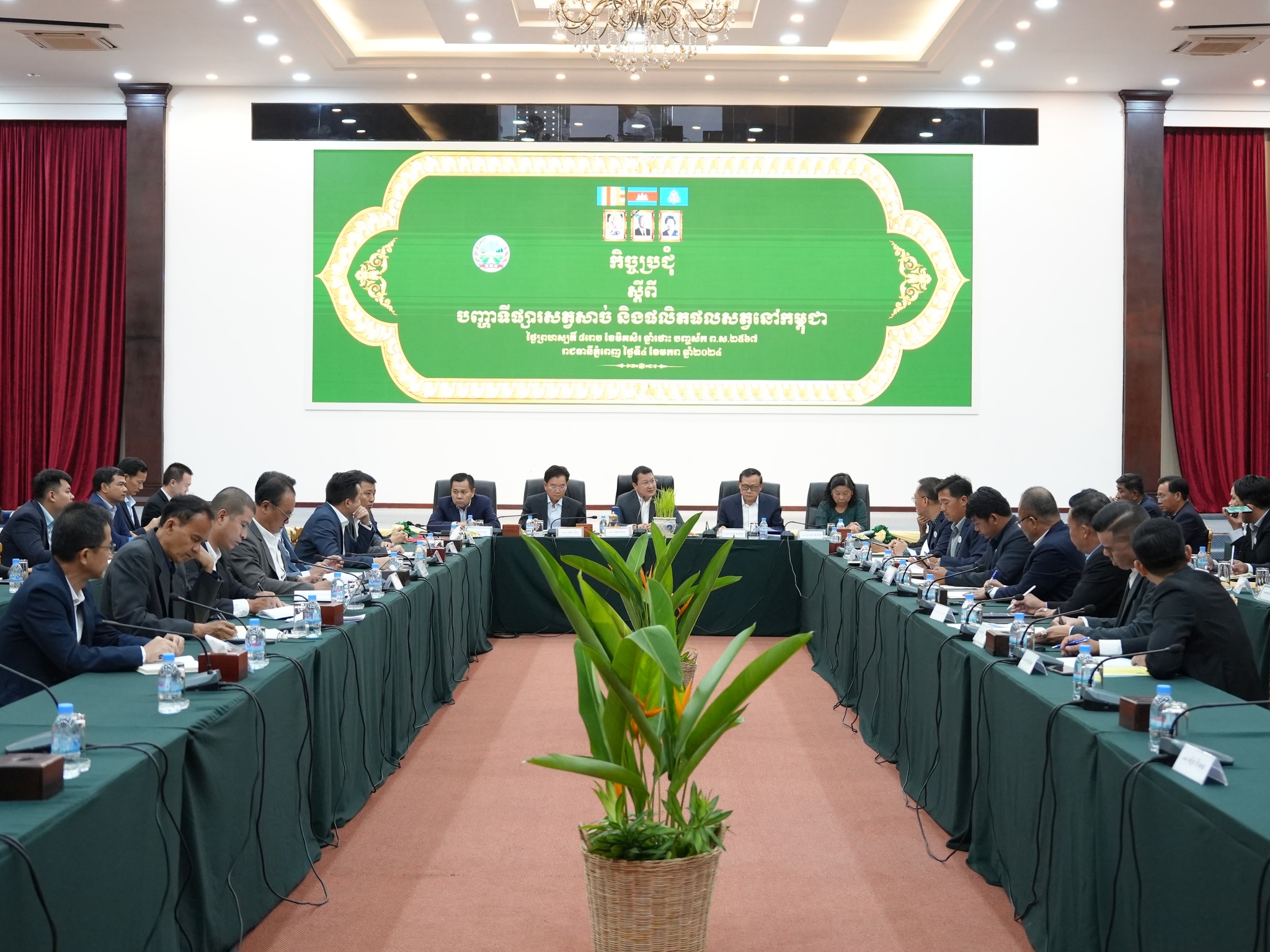 នៅព្រឹកថ្ងៃទី០៤ ខែមករា ឆ្នាំ២០២៤ ឯកឧត្តម ឌិត ទីណា រដ្ឋមន្ត្រីក្រសួងកសិកម្ម រុក្ខាប្រមាញ់ និងនេសាទ បានអញ្ជើញដឹកនាំកិច្ចប្រជុំស្តីពីបញ្ហាទីផ្សារសត្វសាច់ចិញ្ចឹម និងផលិតផលសត្វនៅកម្ពុជា នាទីស្តីការក្រសួងកសិកម្ម រុក្ខាប្រមាញ់ និងនេសាទ ដោយមានការចូលរួមពីភាគីពាក់ព័ន្ធជាច្រើន។
