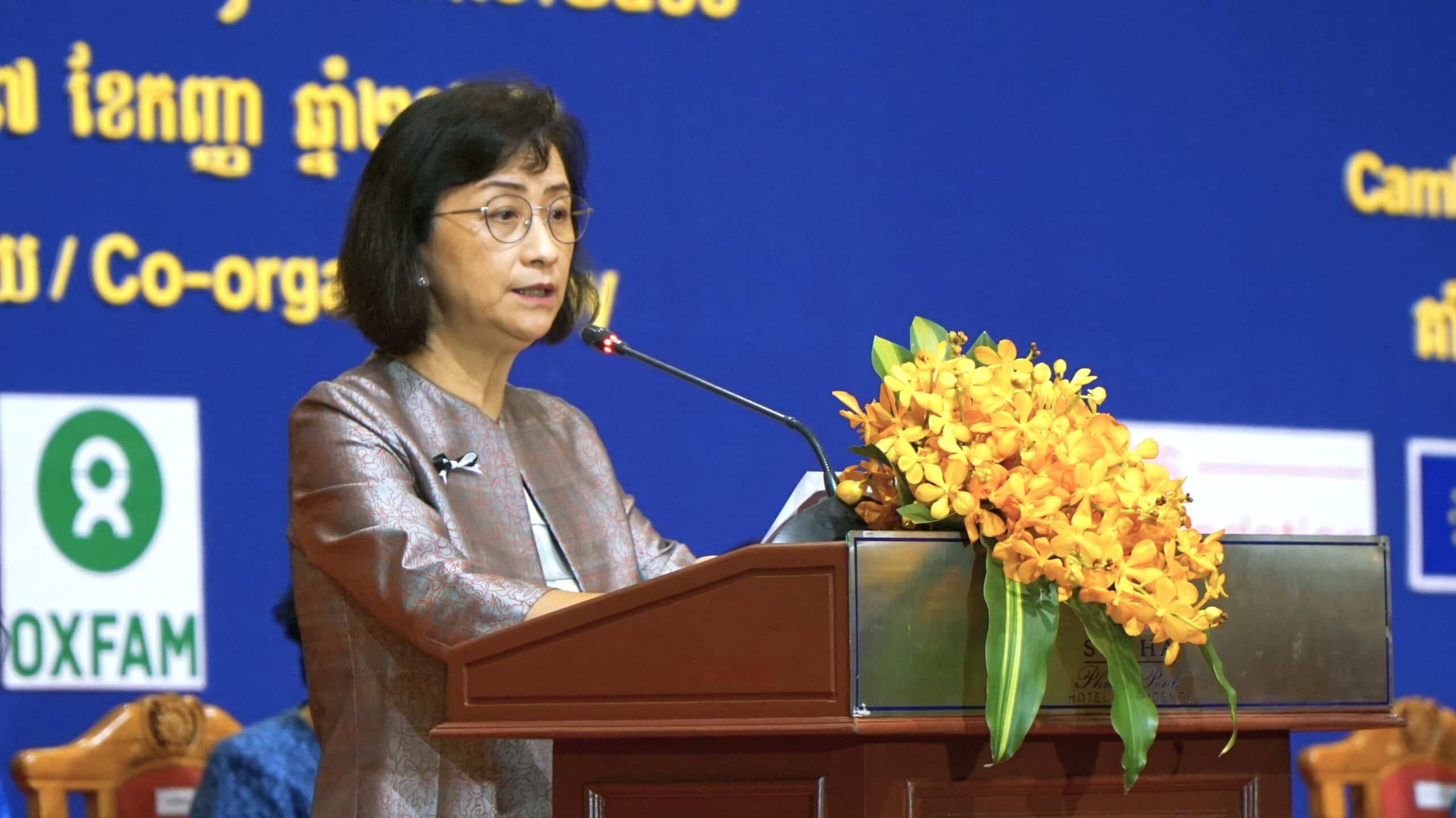 “វេទិកាថ្ងៃនេះឆ្លុះបញ្ជាក់ពីកិច្ចខិតខំប្រឹងប្រែងរបស់រាជរដ្ឋាភិបាលកម្ពុជា តាមរយៈក្រសួងកិច្ចការនារី និងការចូលរួមចំណែករបស់ស្ថាប័ននានា និងអង្គការសង្គមស៊ីវិលក្នុងការលើកកម្ពស់គោលនយោបាយគាំពារសង្គម និងគាំពារគ្រួសារប្រកបដោយបរិយាបន្ននៅក្នុងប្រទេស និងក្នុងសហគមន៍អាស៊ាន។ អង្គការអុកស្វាម និងអង្គការដៃគូ នឹងបន្តជួយជ្រោមជ្រែងរដ្ឋាភិបាលកម្ពុជា ដើម្បីកាត់បន្ថយភាពក្រីក្រ និងលើកកម្ពស់សមភាពយែនឌ័រនៅកម្ពុជា”