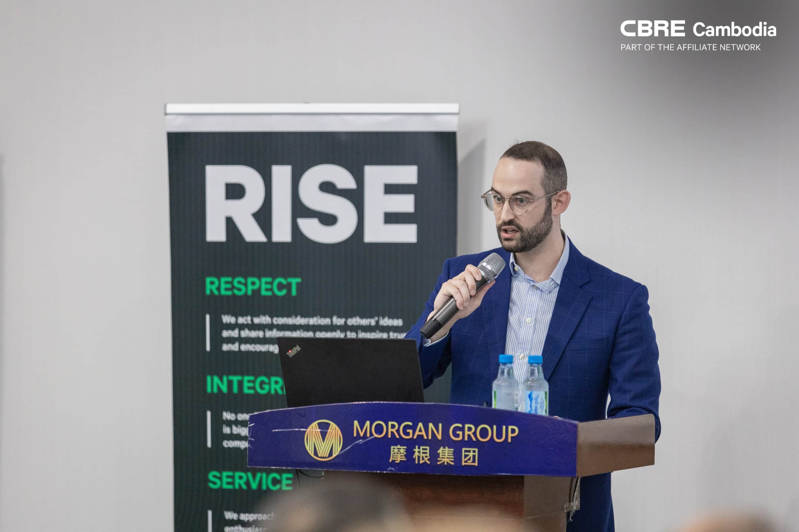 ពីទស្សនៈនៃក្រុមហ៊ុន CBRE Cambodia លោក Lawrence Lennon ដែលជានាយកប្រតិបត្តិប្រចាំប្រទេសបានមើលឃើញពីភាពរីកចម្រើន នៃហេដ្ឋារចនាសម្ព័ន្ធរបស់កម្ពុជាដែលបម្រើឱ្យវិស័យដឹកជញ្ជូន។ ដោយឡែក លោកក៏បានលើកឡើងអំពីឧស្សាហកម្មសំខាន់ៗនៅកម្ពុជាដែលរួមមាន ឧស្សាហកម្មផ្នែកសំលៀកបំពាក់ (44%) ផ្នែកកាបូប (១០%) ផ្នែកស្បែកជើង (9%) កង់ (៥%) និងស្រូវ (២%)។ ក្នុងនោះ គោលដៅនាំចេញសំខាន់ៗរួមមាន សហរដ្ឋអាមេរិក (៤៤%) សហភាពអ៊ឺរ៉ុប (១៩%) ប្រទេសក្នុងតំបន់អាស៊ាន (៧%) ចិន (៦%) ជប៉ុន (៦%) និងប្រទេសផ្សេងៗទៀតចំនួន ១៣%។