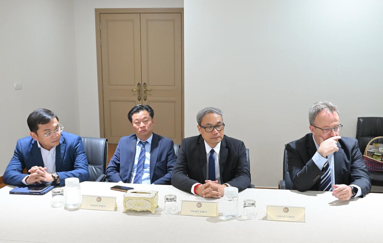 ជាមួយគ្នានេះ ដើម្បីពិភាក្សាអំពីកិច្ចសហប្រតិបត្តិការក្នុងការផលិត និងការនាំចេញផលិតផលកម្ពុជាទៅកាន់ទីផ្សារបារាំង គណៈប្រតិភូក្រុមហ៊ុន Smart Eden ដឹកនាំដោយនាយកប្រតិបត្តិ លោក Laurent Strauch និងអ្នកឧកញ៉ា ហ៊ុន ឡាក់ នៅថ្ងៃទី១ ខែមេសា ឆ្នាំ២០២៥ បានជួបជជែកជាមួយឯកឧត្តម ហែម វណ្ណឌី រដ្ឋមន្ត្រីក្រសួងឧស្សាហកម្ម វិទ្យាសាស្ត្រ បច្ចេកវិទ្យា និងនវានុវត្តន៍។