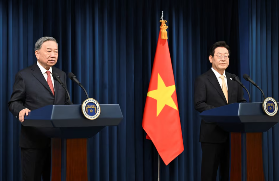 ប្រធានាធិបតីកូរ៉េខាងត្បូង លោក Lee Jae Myung ទទួលស្វាគមន៍មេដឹកនាំវៀតណាម To Lam ជាភ្ញៀវរដ្ឋដំបូងរបស់លោកចាប់តាំងពីចូលកាន់តំណែងនៅថ្ងៃទី ៤ ខែមិថុនាកន្លងទៅនេះ។ ការិយាល័យរបស់លោក Lee បង្ហើបថា មេដឹកនាំទាំងពីរបានពិភាក្សាអំពីការលើកកម្ពស់ពាណិជ្ជកម្ម និងការវិនិយោគនៅក្នុងប្រទេសវៀតណាម។ ភាគីទាំងពីរគ្រោងនឹងចុះហត្ថលេខាលើអនុស្សរណៈនៃការយោគយល់យ៉ាងហោចណាស់ចំនួន ១០ លើកិច្ចសហប្រតិបត្តិការលើវិស័យនុយក្លេអ៊ែរ និងថាមពលកកើតឡើងវិញ, គោលនយោបាយរូបិយវត្ថុ និងហិរញ្ញវត្ថុ, និងវិទ្យាសាស្ត្រ និងបច្ចេកវិទ្យាជាដើម។
