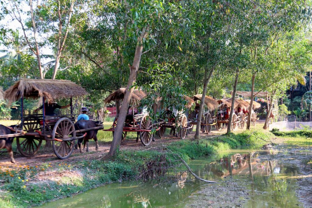 លោក ឆេង ឆោម អ្នកគ្រប់គ្រងទូទៅតំបន់ហគមន៍រទេះក្របីបានឱ្យដឹងថា សហគមន៍យើង មានរទេះក្របីចំនួន ១៦គ្រឿង និងបុគ្គលិកប្រមាណ ២០នាក់សម្រាប់បម្រើសេវាកម្មដឹកជូនភ្ញៀវកំសាន្តតាមភូមិ តាមវាលស្រែ ដើម្បីមើលទេសភាពដ៏ស្រស់បំព្រងនារដូវប្រាំង រដូវវស្សា និងការរស់នៅរបស់បងប្អូនប្រជាកសិករនៅទីនោះផងដែរ។