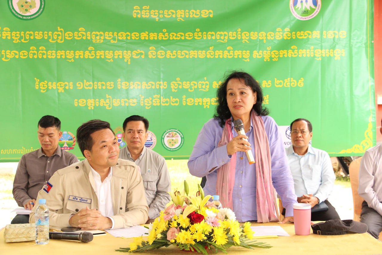 សៀមរាប ៖ សហគមន៍កសិកម្មសម្ព័ន្ធកសិករខ្មែរអង្គរ នៅខេត្តសៀមរាប ទទួលបានជំនួយឥតសំណង៧០ម៉ឺនដុល្លារពីគម្រោងពិពិធកម្មកសិកម្មកម្ពុជា (CASDP) ដែលប្រាក់ជំនួយនេះនឹងរួមចំណែកក្នុងការពង្រីកហេដ្ឋារចនាសម្ព័ន្ធកសិកម្មសំខាន់ៗ ដើម្បីបង្កើនសមត្ថភាពផលិតកម្មរបស់សហគមន៍។